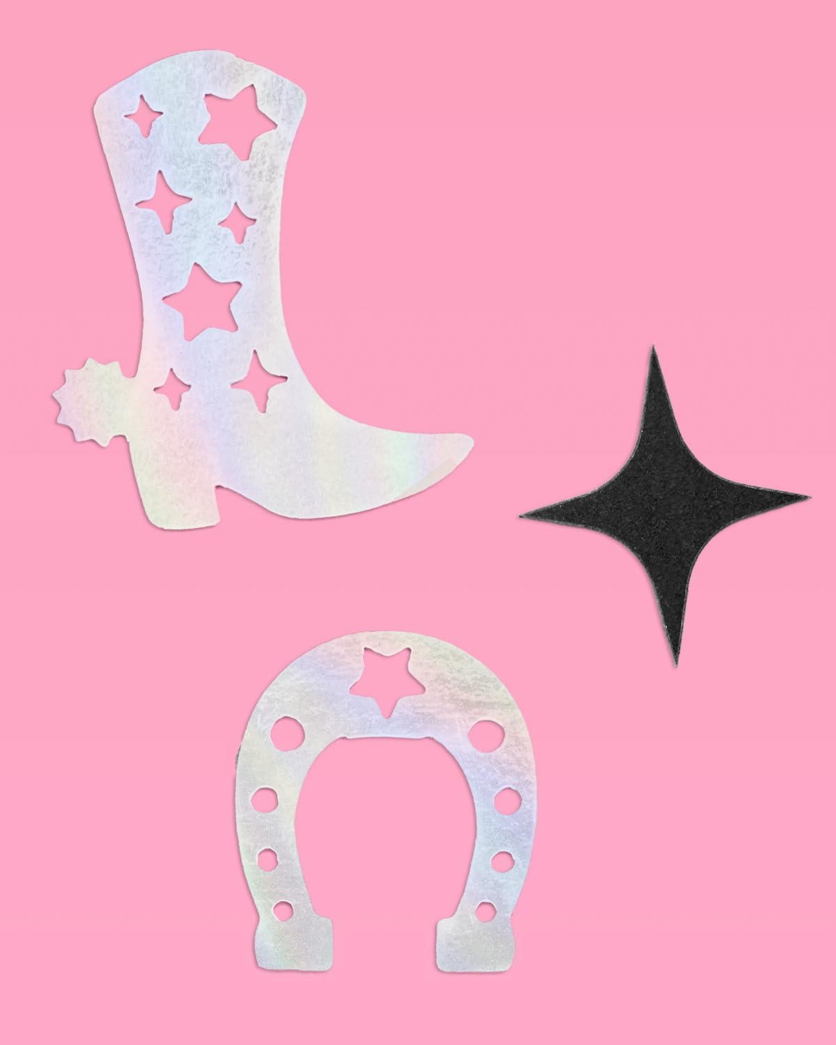 - Western Ready: Our iridescent boots and horseshoe with matte black sparkle icons confetti is the party addition you've been looking for + a guaranteed hit!