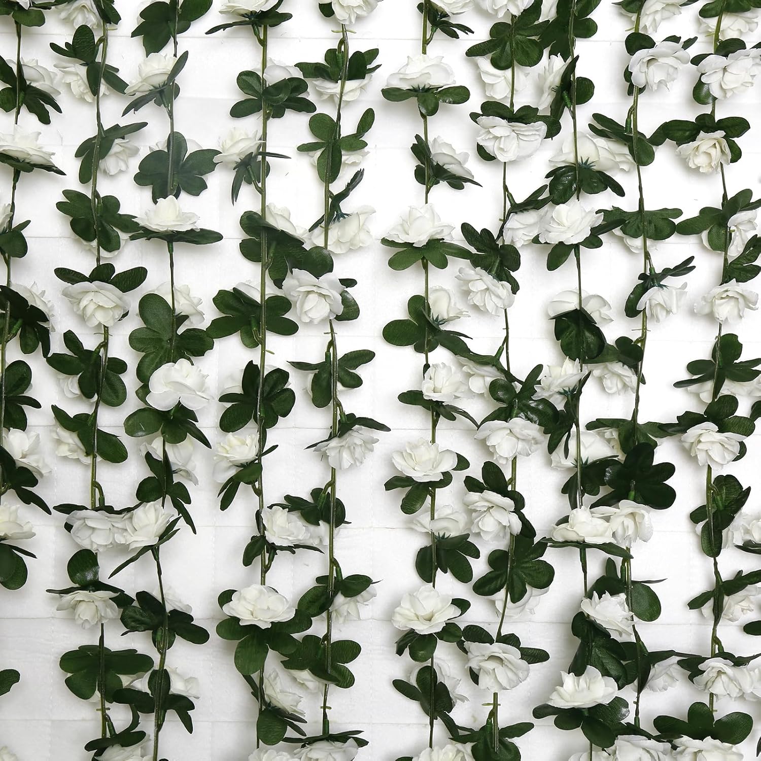 - Packaging: Includes 12 artificial flower garland, each with 45 white silk roses and 45 leaves