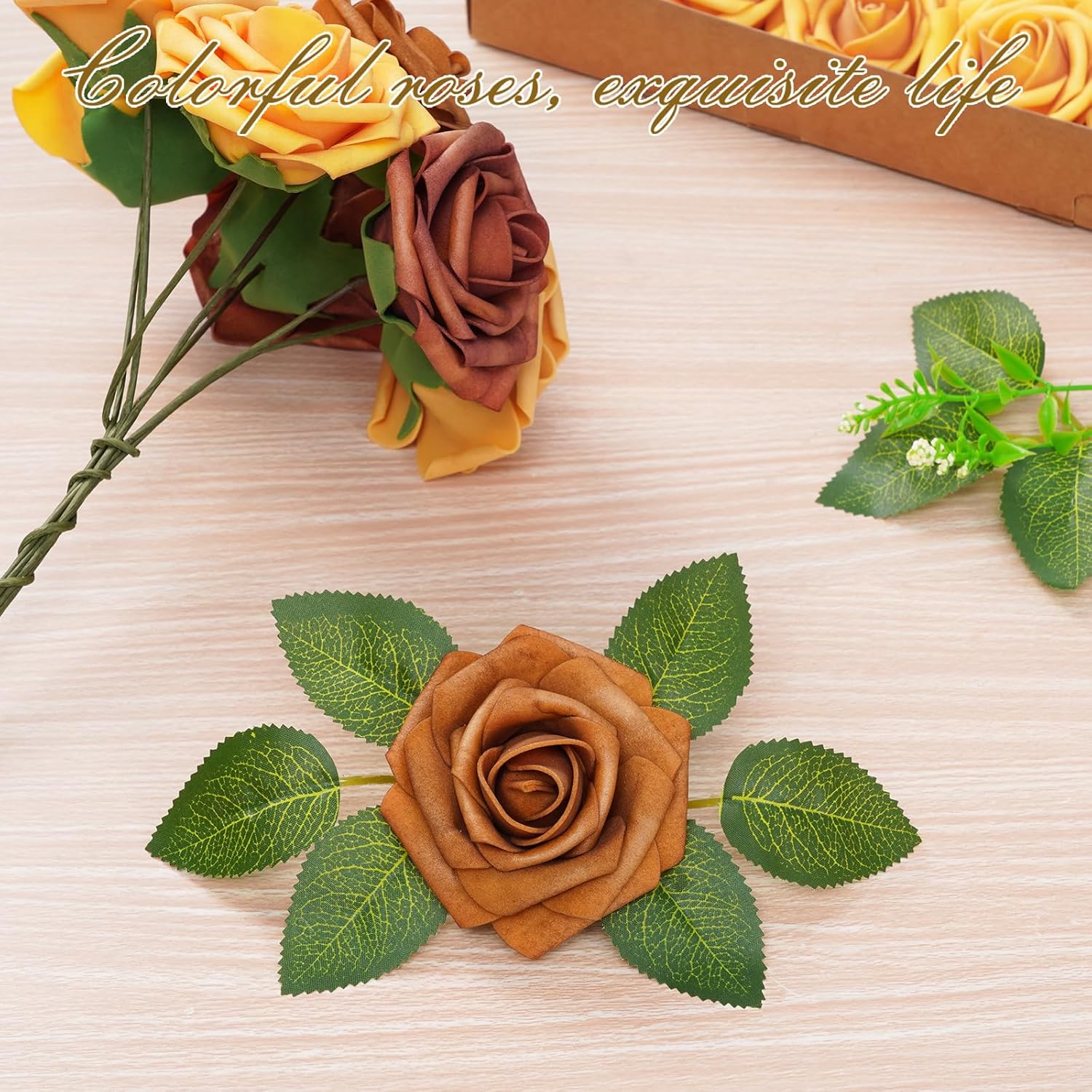 - Kindle Your Creative Flames: The box includes 16 gradient burnt orange roses (3" flower head, 8" stem) and 4 green rose leaves, perfect for an array of DIY crafts. Whether creating wedding bouquets, graduation or birthday party ornaments, baby shower decorations, or cake adornments, our faux roses add a touch of class to every important moment.