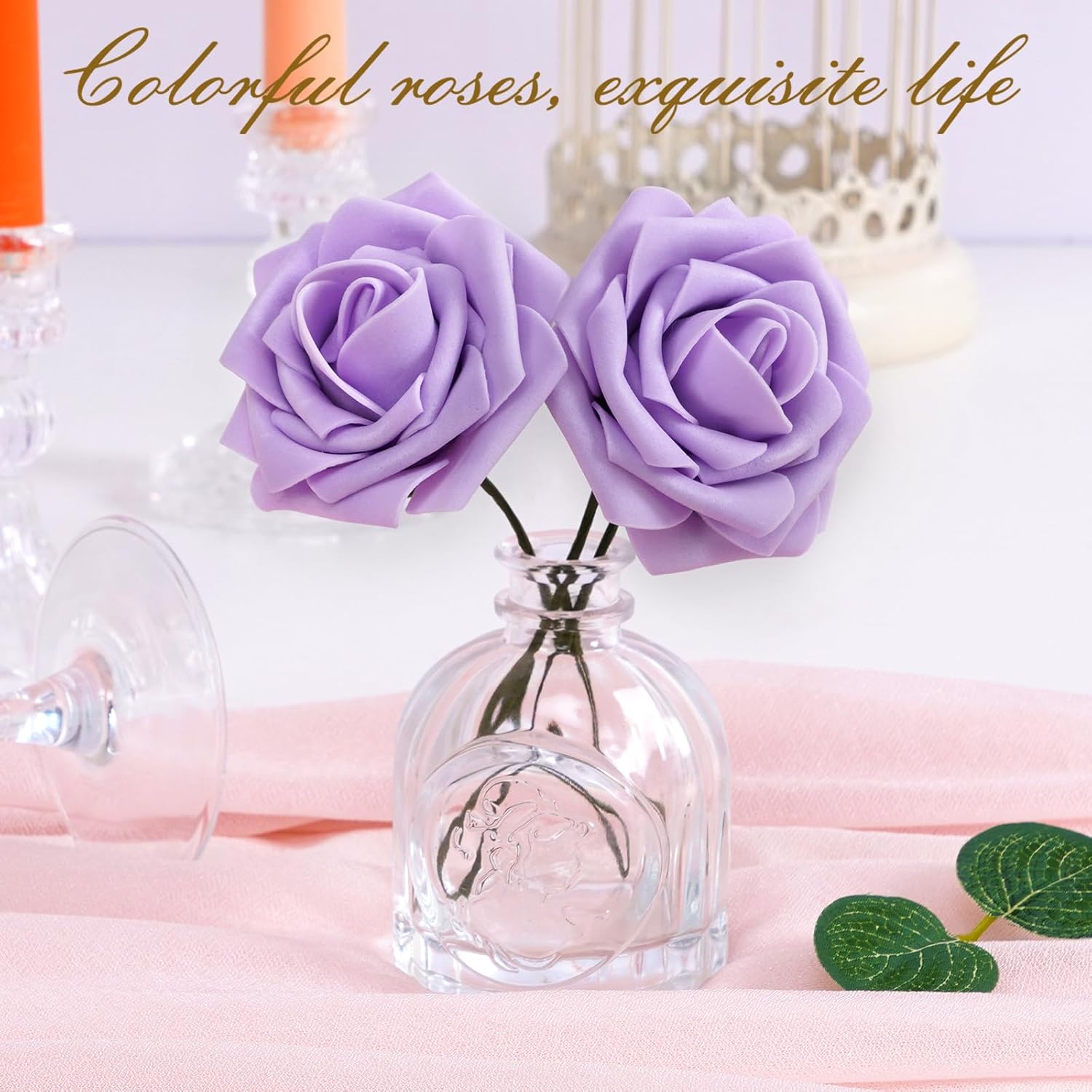- Kindle Your Creative Flames: The box includes 16 purple roses (3" flower head, 8" stem) and 4 green rose leaves, prfect for an array of DIY crafts. Whether creating wedding bouquets, graduation or birthday party ornaments, baby shower decorations, or cake adornments, our faux roses add a touch of class to every important moment.
