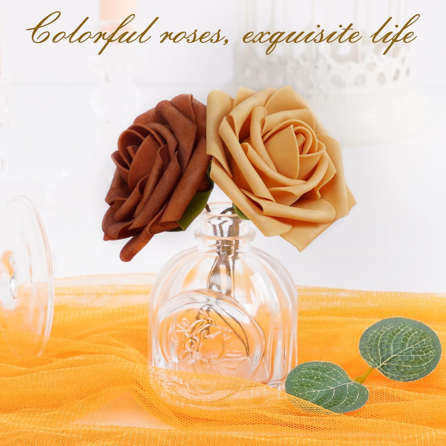 BLEUM CADE 36Pcs Artificial Flowers Fake Roses with Stems, Gradient Burnt Orange Boxed Foam Roses for DIY Bouquets Centerpieces Wedding Party Arrangement Bridal Shower Decor