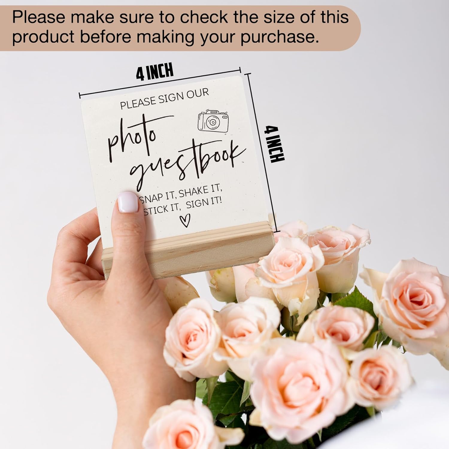 Photo Guest Book Sign, Wedding Guest Book Desk Decor, Guest Book Wedding Reception Wood Plaque, Please Sign Our GuestbookSign Wooden Plaque with Wood Stand forWedding Table Decor Signs