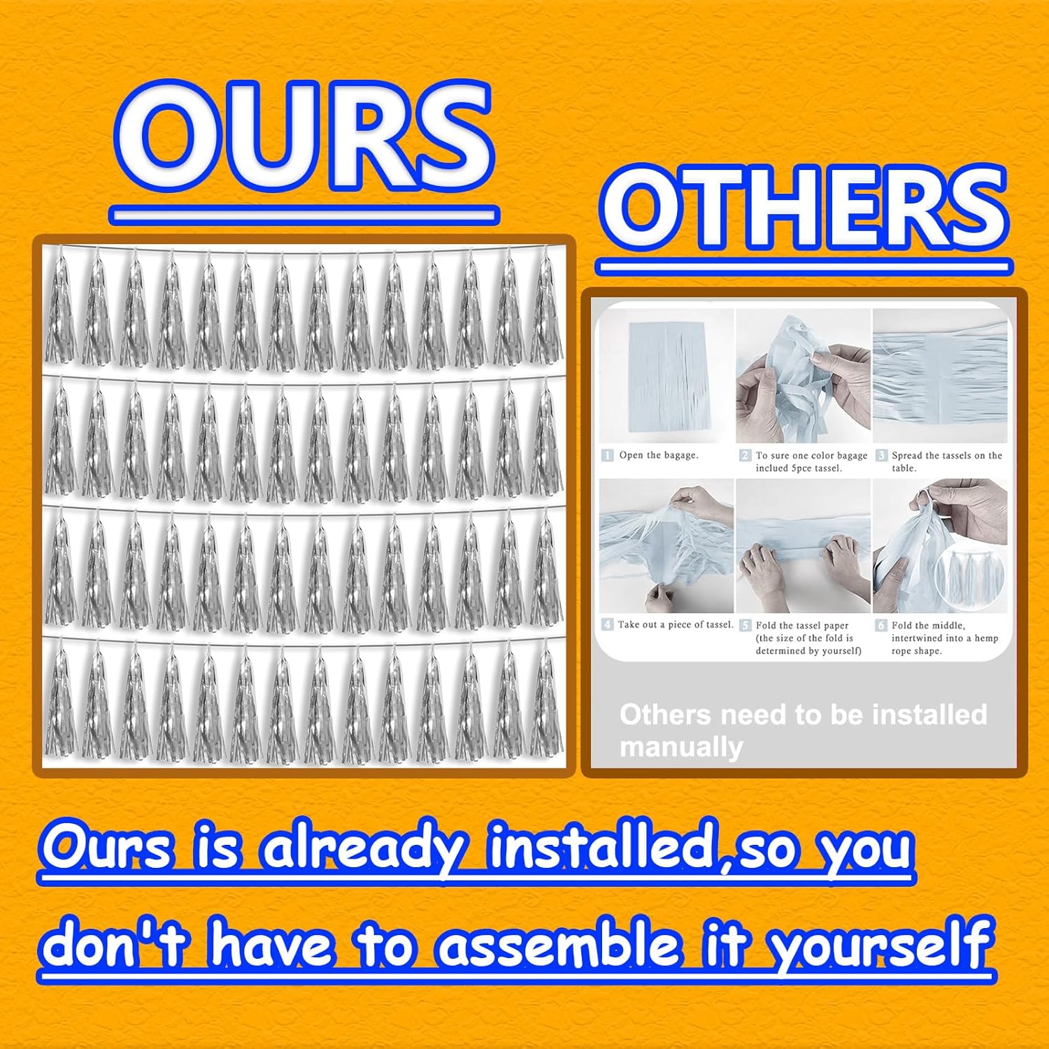 - 【Package Includes】The total length of the silver birthday tassels banner is 40 feet, divided into 4 strips, each 10 feet long. Each banner contains 15 tassels, and each tassel measures 14 inches, for birthday decorations many occasions uitable for Patriotic display, Homecoming Float, Christmas Float, ecorative metal trailers, graduation floats etc