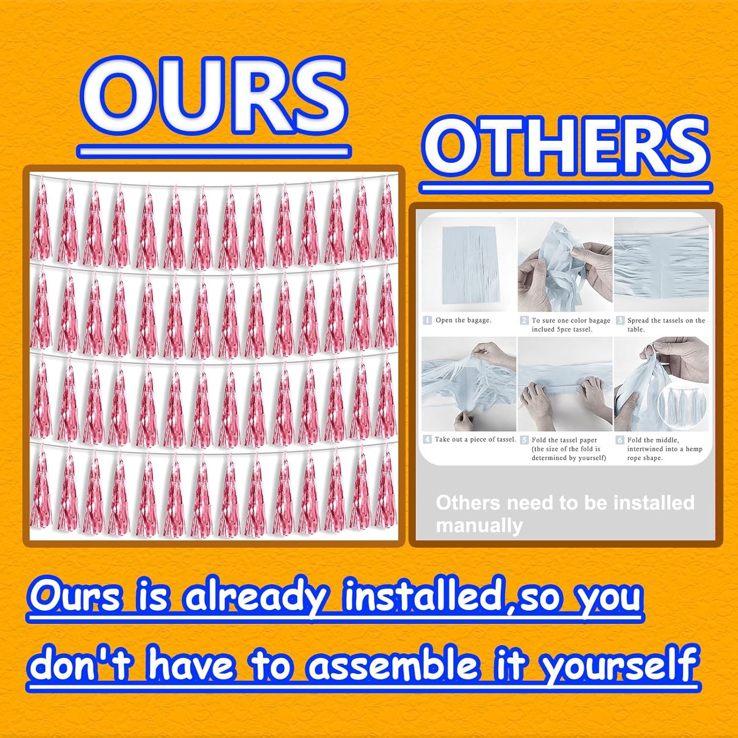 - 【Package Includes】The total length of the pink birthday tassels banner is 40 feet, divided into 4 strips, each 10 feet long. Each banner contains 15 tassels, and each tassel measures 14 inches, for birthday decorations many occasions uitable for Patriotic display, Homecoming Float, Christmas Float, ecorative metal trailers, graduation floats etc