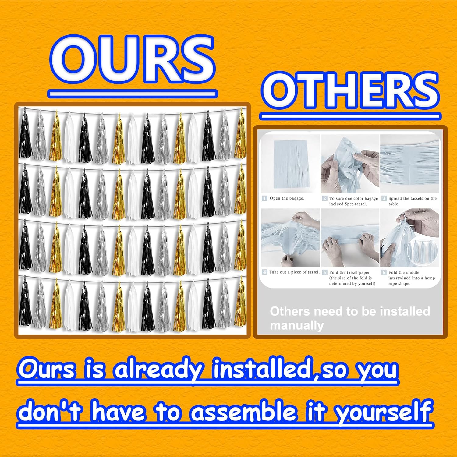 - 【Premium Reusable Tassel Material】: Our glitter fringe garland is made of high-quality PET material, with the virtue of nice craftsmanship and light weight which is safe and recyclable. And the smooth touch makes tassels easy to tidy up. They come with white ribbon for hanging, and garland tassels hang perpendicular to the string, and are adjustable to provide you with the option of spreading the tassels out or piecing them closer together.