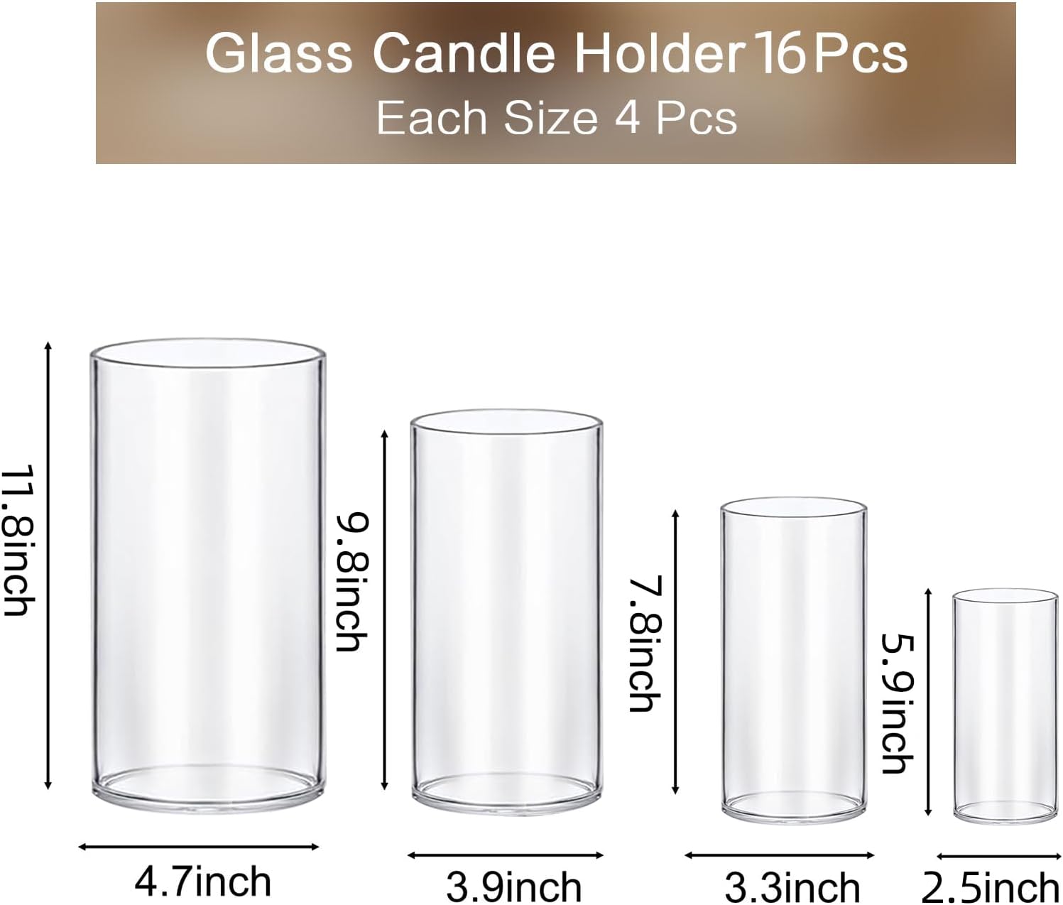PHOSPHOR 16 PCS Glass Candle Holder, Hurricane Candle Hoder, Glass Pillar Candle Holder, Clear Cylinder Candleholder Cylinder Vase for Centerpieces Wedding Party Decoration