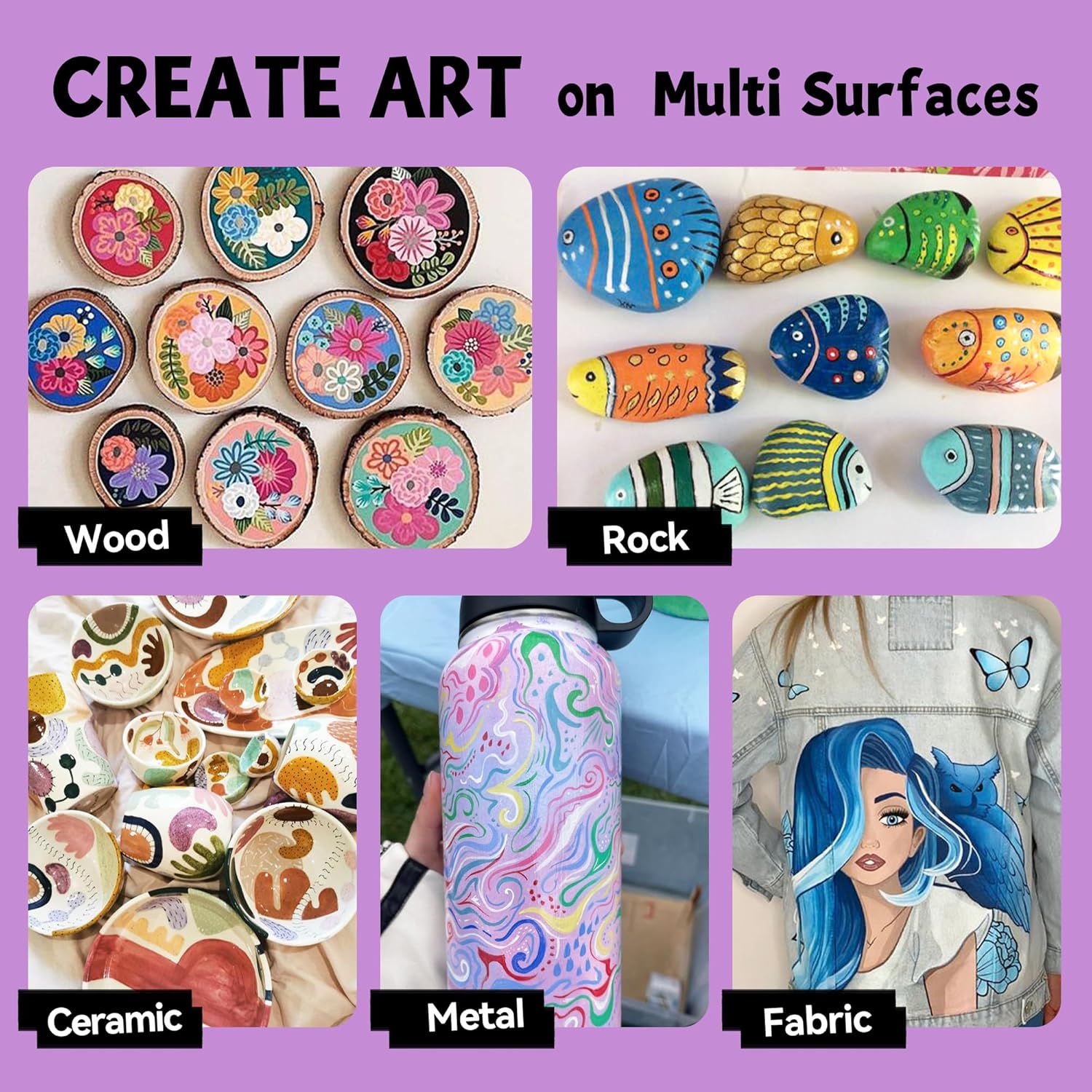 • Non-Toxic and Safe – SRUOLOC paint markers are non-toxic, Each thick permanent marker meets ASTM d-4236 and EN-71 safety standards, are suitable for artists of all ages, working seamlessly on rock, fabric, glass, wood, plastic, paper, and more