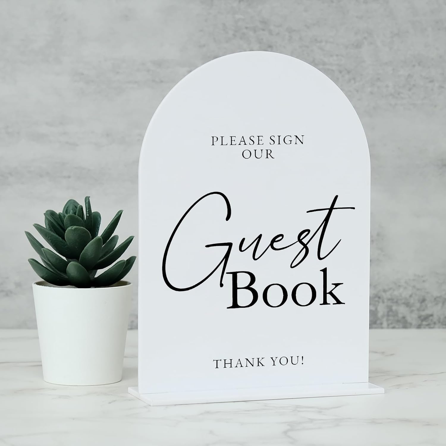 - Package Includes: You will receive a 5x7 inch white arch acrylic guest book sign with base, smooth edges,1/8 inch thick.