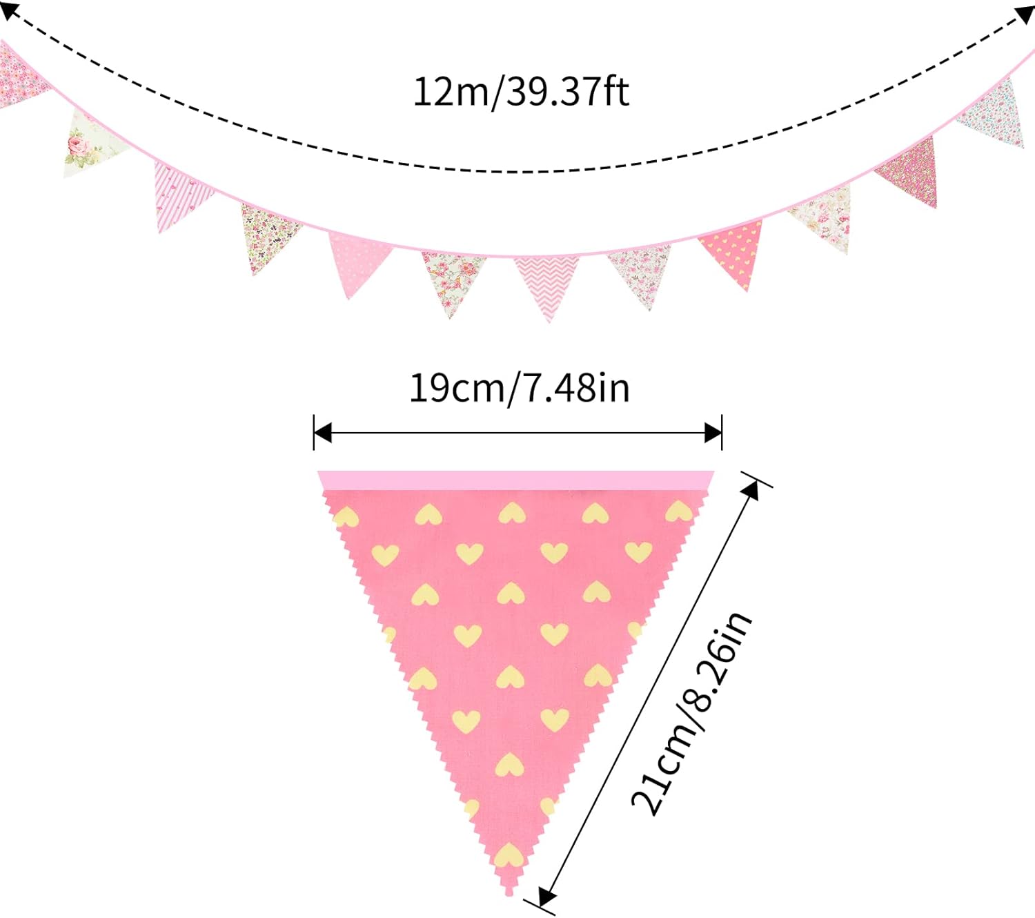 - 【Generous Length】With a total length of 39 feet, this banner provides ample decoration for large spaces. Each triangular flag measures 19x21 cm, making it a striking addition to any decor.