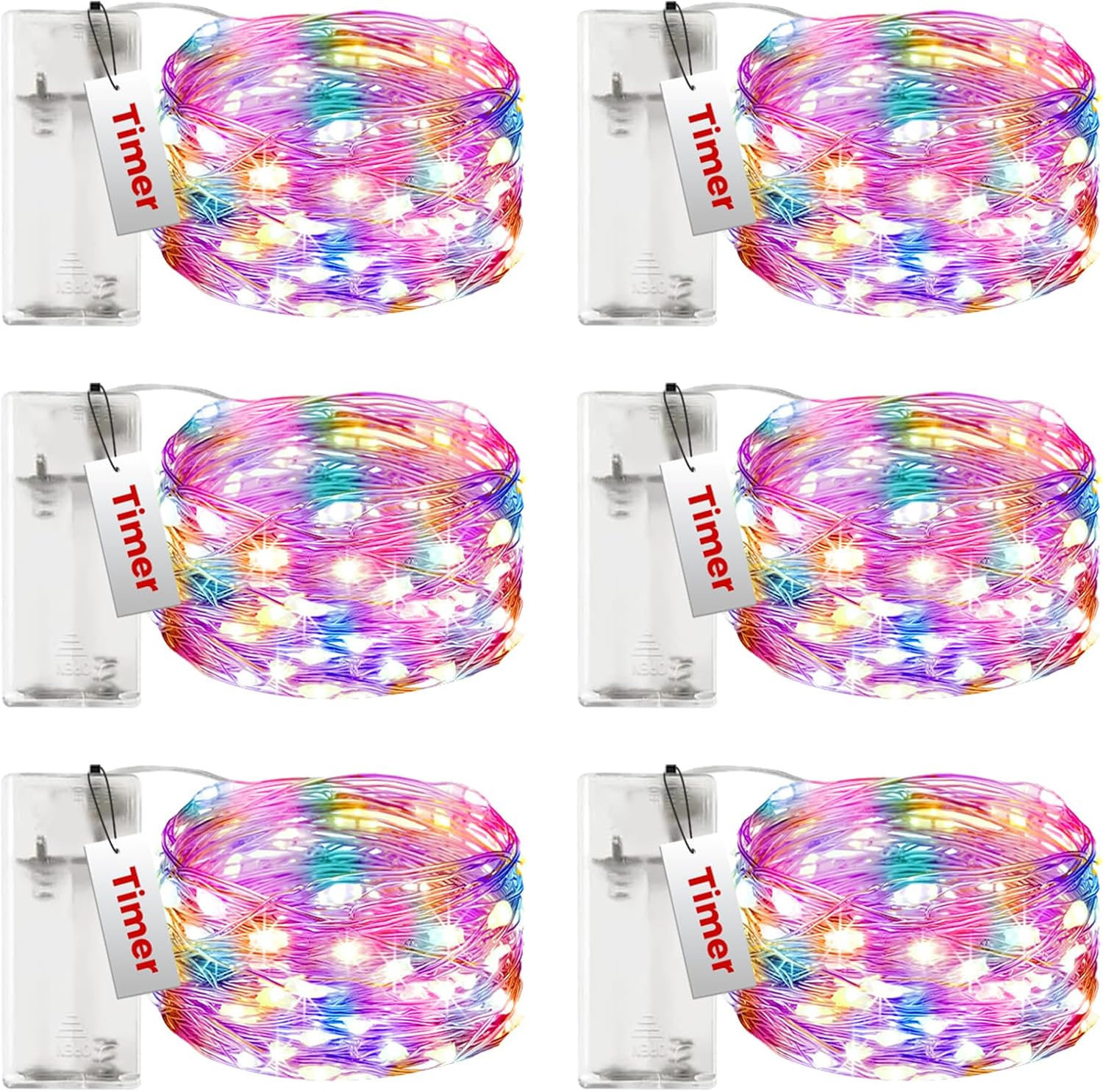 btfarm 6 Pack Fairy Lights Battery Operated with Timer, 10FT 30LED Twinkle Lights Waterproof, Copper Wire Christmas String Lights Battery Powered for Indoor Outdoor Wedding Party Holiday Decorations