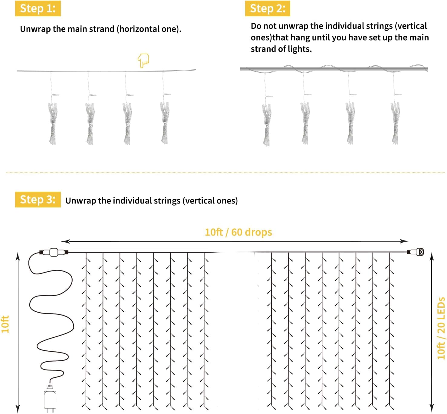 - Connectable - 1 window lights strings connectable to cover a larger area. Please only keep the controller on the first set when strings are connected so that you can control these curtain fairy lights at the same time with one remote.