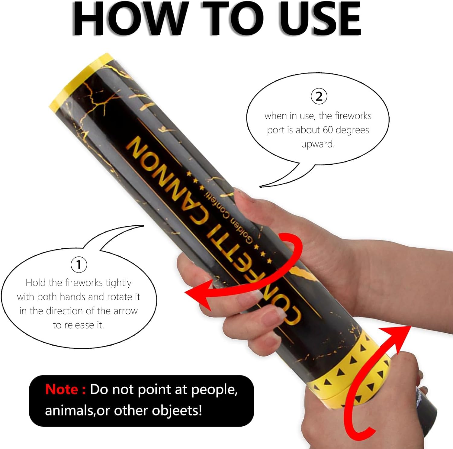 - 【Simple to Use】You just twist the bottom of the cannon with your hand and aim straight up, each party popper shoots confetti up to 15-20 feet in the air.