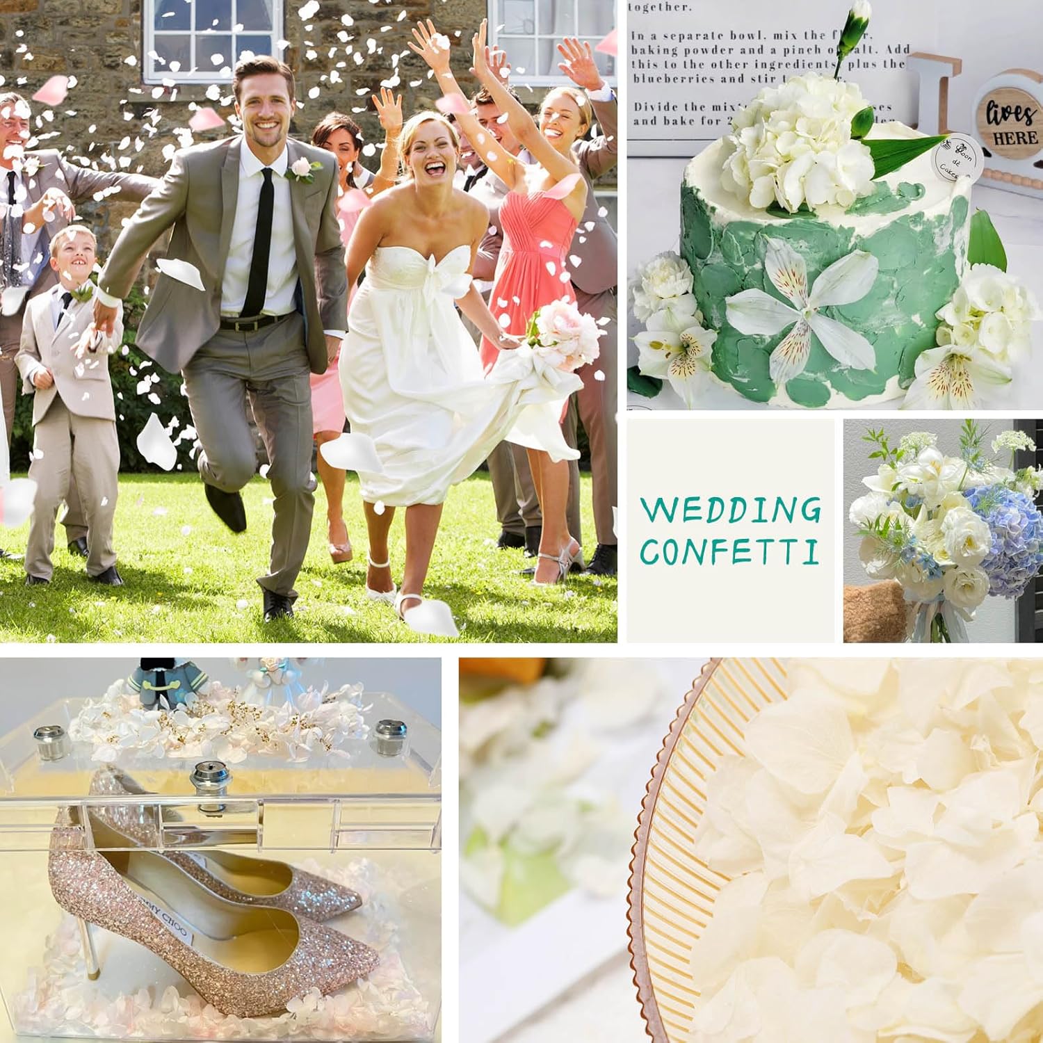 - HYDRANGEA PETALS DECORATIONS: Hydrangea petals in bulk are ideal decorations for wedding decor, theme party, romantic nights, proposal dinner, candlelight dinner, church aisle, baby shower, candy buffet, special festival decorations. Flower petals are ideal for wedding, surprise proposal, Valentine’s Day, celebration, honeymoon, anniversary and Christmas gifts for women. They can also be used to create DIY creative floral arrangements