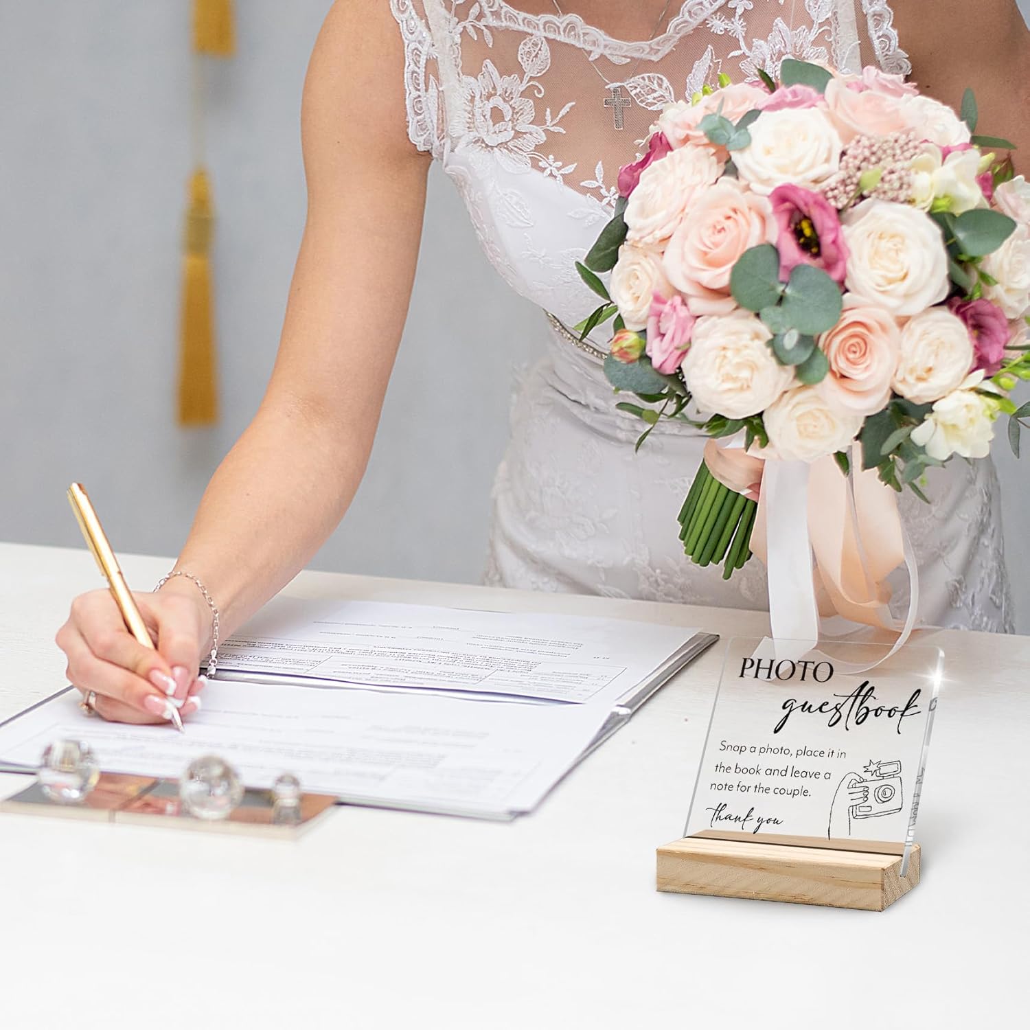 Photo Guest Book Sign, Wedding Decor, Acrylic Wedding Signs, Guest Book Signs forWedding, WeddingGuest Books SignAcrylic Plaque Sign with Wood Stand for WeddingDecorations for Reception