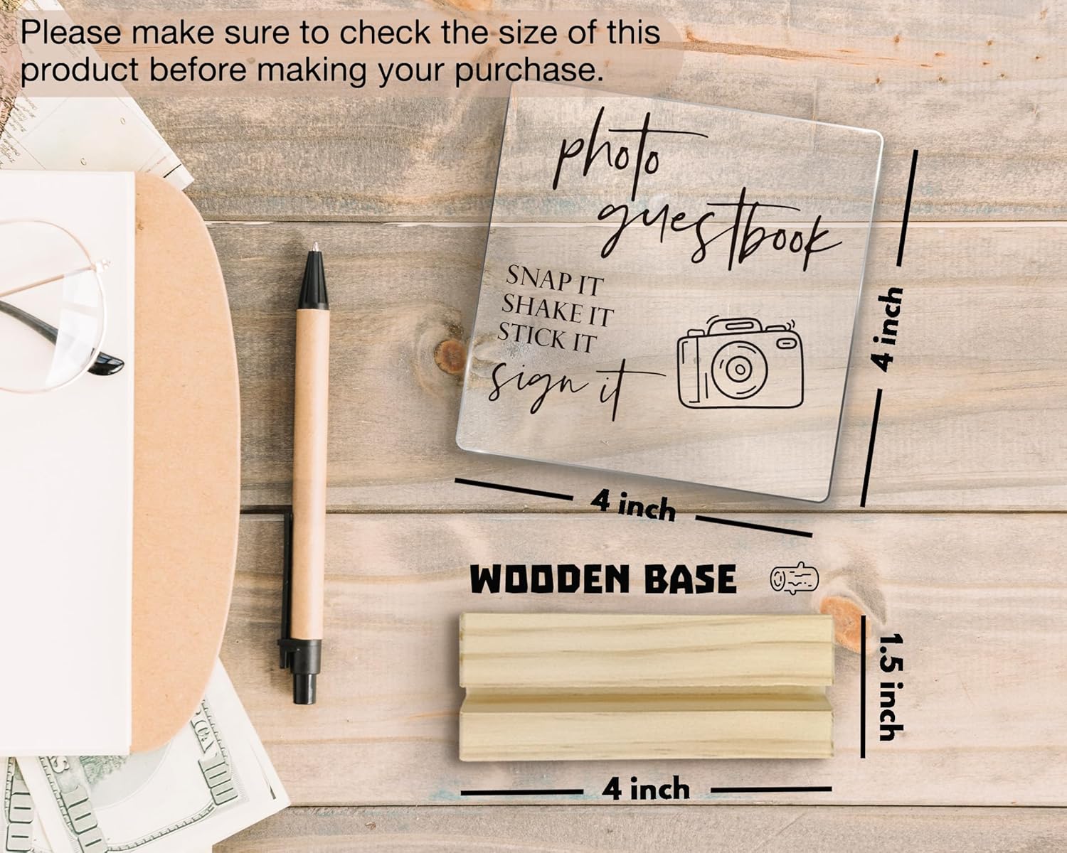 Wedding Guest Book Desk Decor, Acrylic Wedding Signs, Guest Book WeddingReception, WeddingDecor, Photo GuestBook Acrylic Plaque Sign with Wood Stand for WeddingReception Table Decor