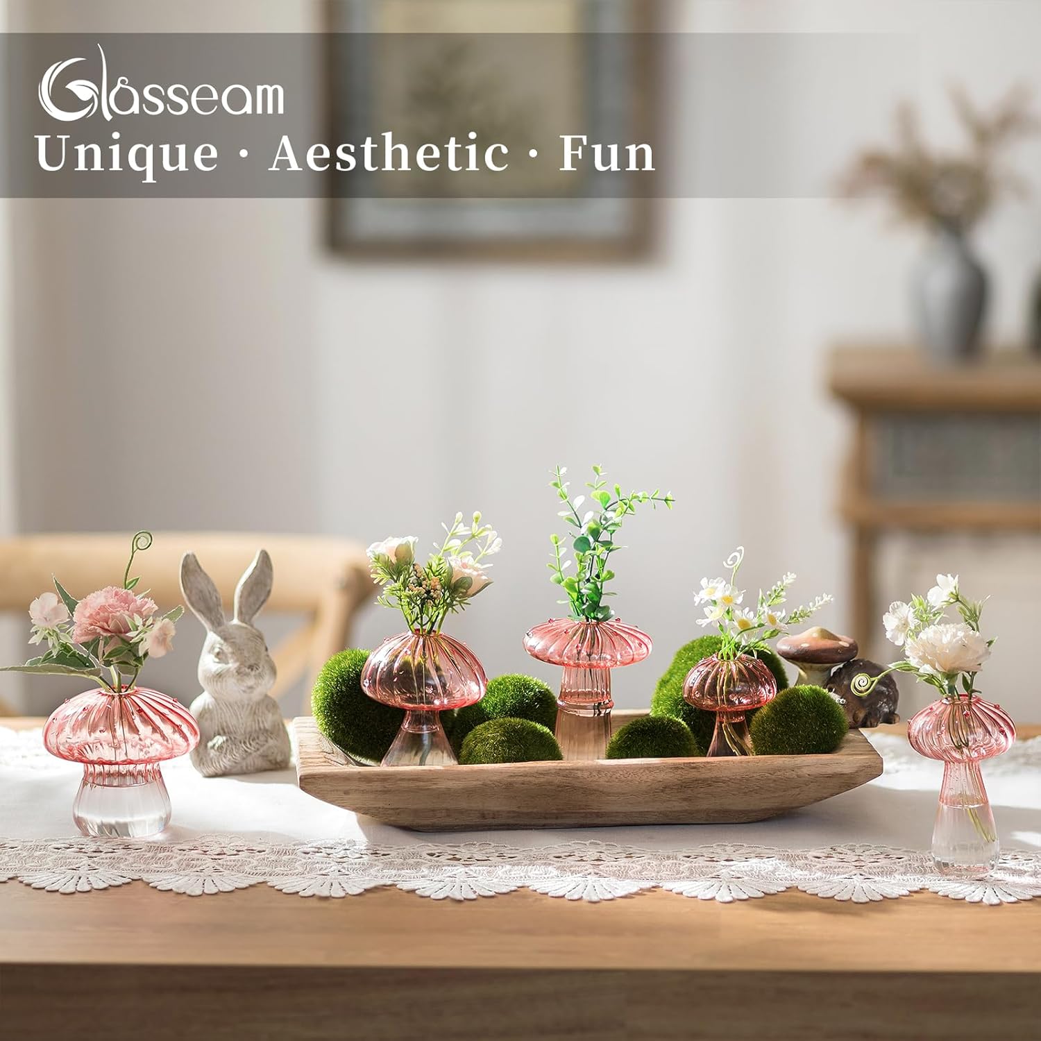 Glasseam Mushroom Plant Propagation Stations: Pink Glass Terrarium Jar Set of 10 Cute Planters for Indoor Plants Mini Propagate Station Unique Christmas Birthday Gifts for Women Home Office Decor