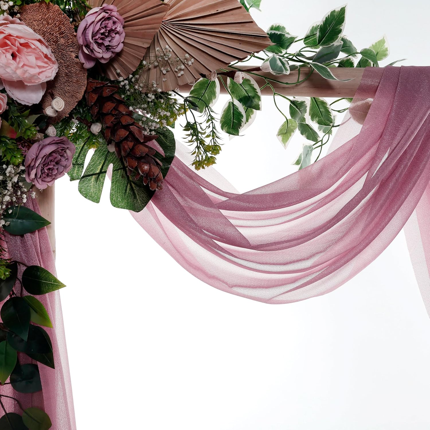 VDS Pack of 2 Panel (30 Inch X 40 Feet) Wedding Arch Draping Fabric Sheer Chiffon Fabric Drapery for Wedding Ceremony Reception Swag Backdrop Canopy Chuppah ARBO Altars Decoration (Mauva)
