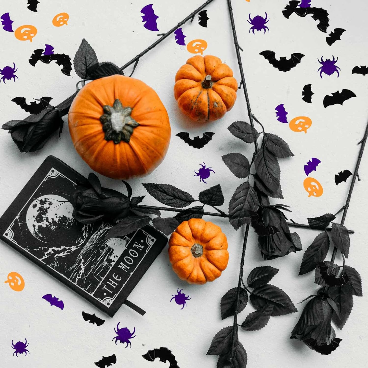 - Halloween Confetti Decorations: This Halloween confetti comes in 3 colors: black, orange, purple. Includes: pumpkin confetti, spider confetti, bat confetti. It's suitable for your Halloween party table decor, cute Halloween themed designs,full of festival atmosphere