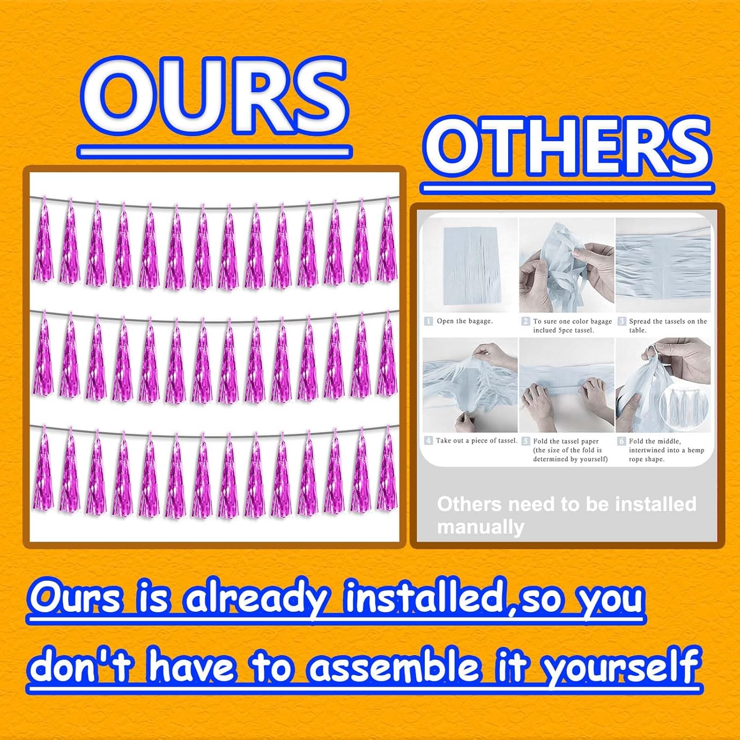 - 【Package Includes】The total length of the hot pink birthday tassels banner is 30 feet, divided into 3 strips, each 10 feet long. Each banner contains 15 tassels, and each tassel measures 14 inches, for birthday decorations many occasions uitable for Patriotic display, Homecoming Float, Christmas Float, ecorative metal trailers, graduation floats etc