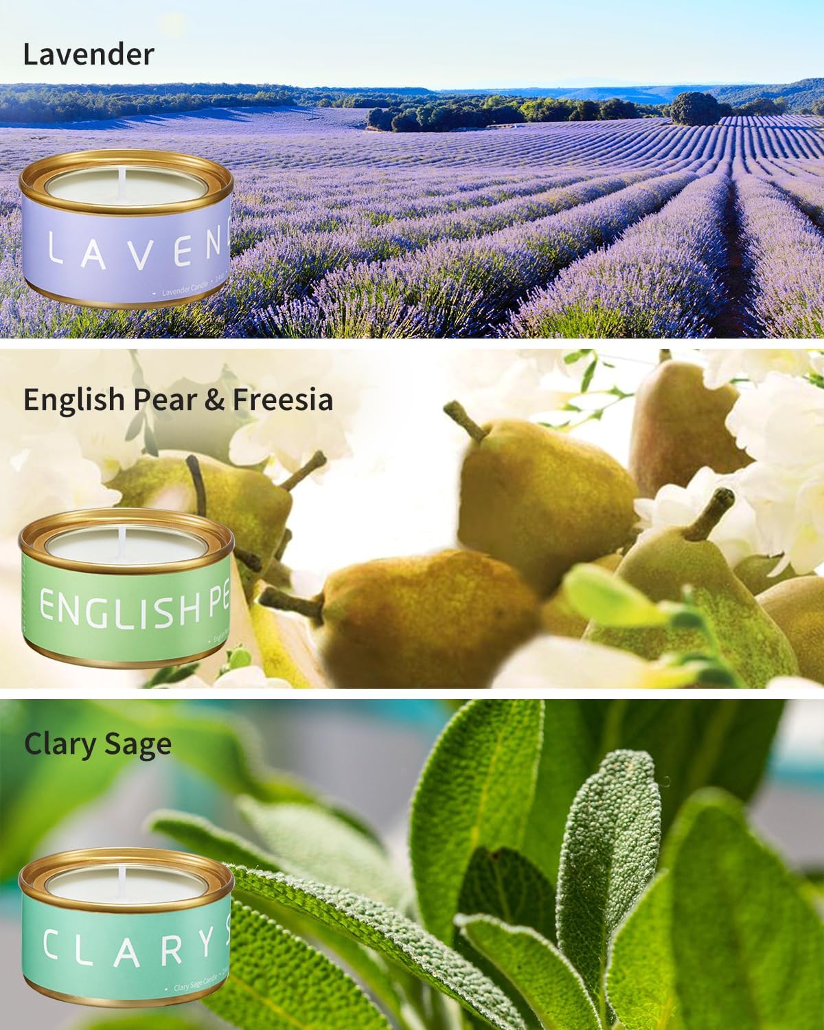 VTS Candles for Home Scented, 6 Pack Aromatherapy Candles (Lavender, Vanilla, English Pear & Freesia, Neroil, Clary Sage, Jasmine Sambac), Candles Gift Set for Stocking Stuffers, Christmas, Birthday