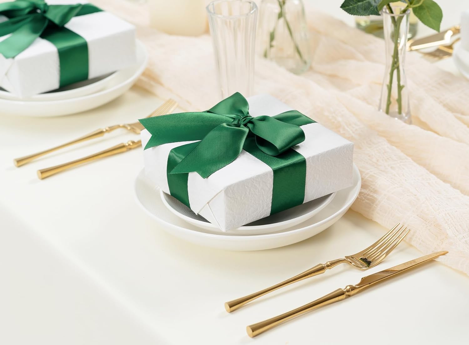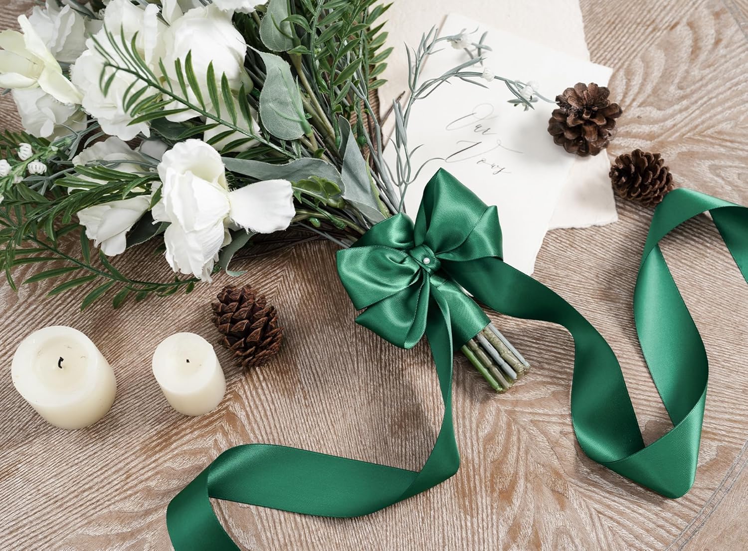 Forest Green Satin Ribbon 1-1/2 Inch x 50 Yards Double-Faced Ribbons for Christmas Gift Wrapping Crafts Flower Bouquet Wedding Paper Bows Invitations