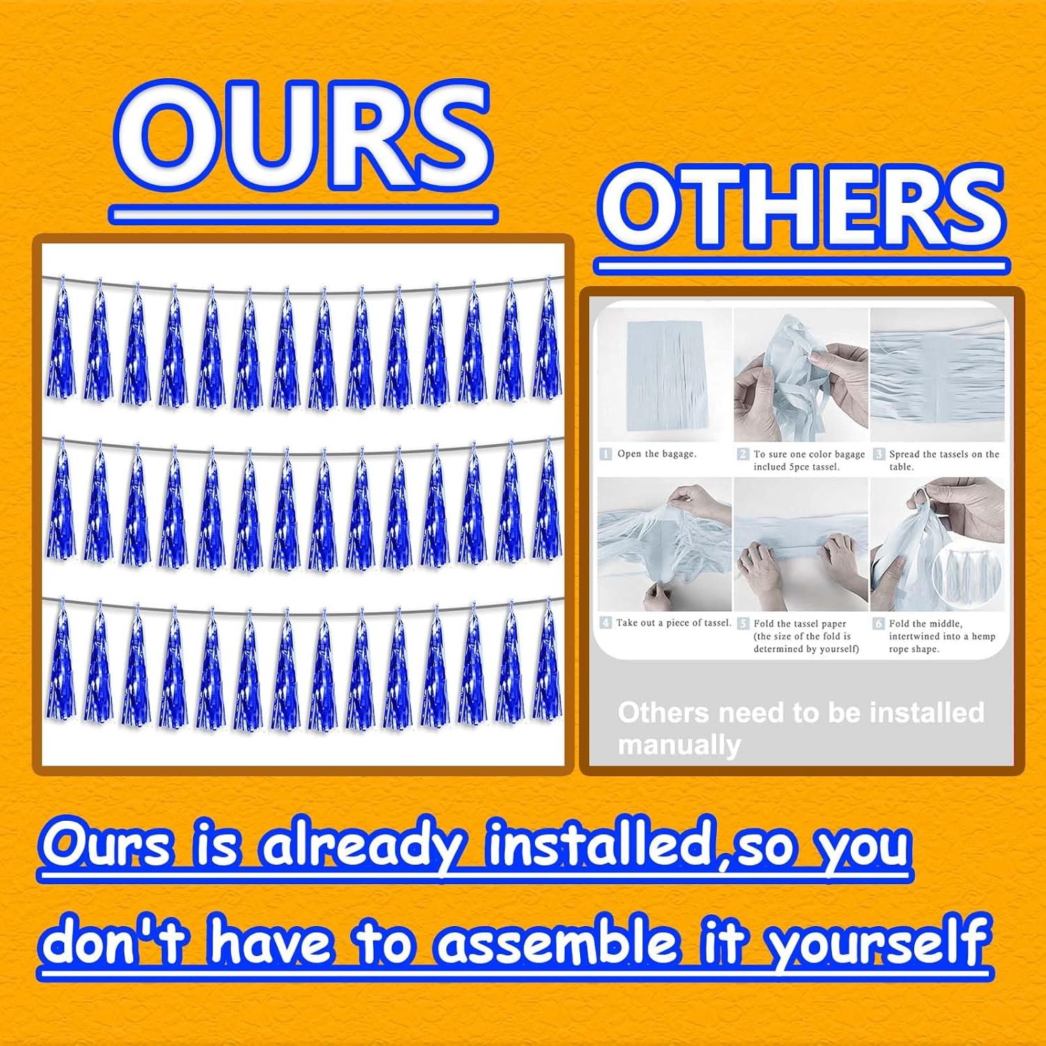 - 【Package Includes】The total length of the blue birthday tassels banner is 30 feet, divided into 3 strips, each 10 feet long. Each banner contains 15 tassels, and each tassel measures 14 inches, for birthday decorations many occasions uitable for Patriotic display, Homecoming Float, Christmas Float, ecorative metal trailers, graduation floats etc