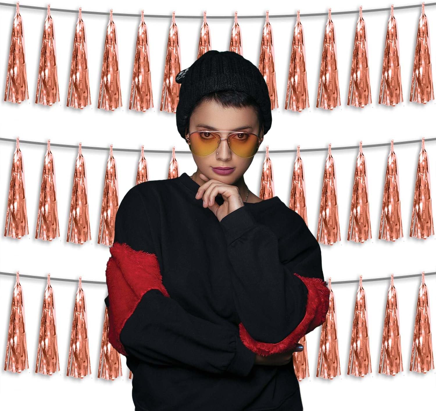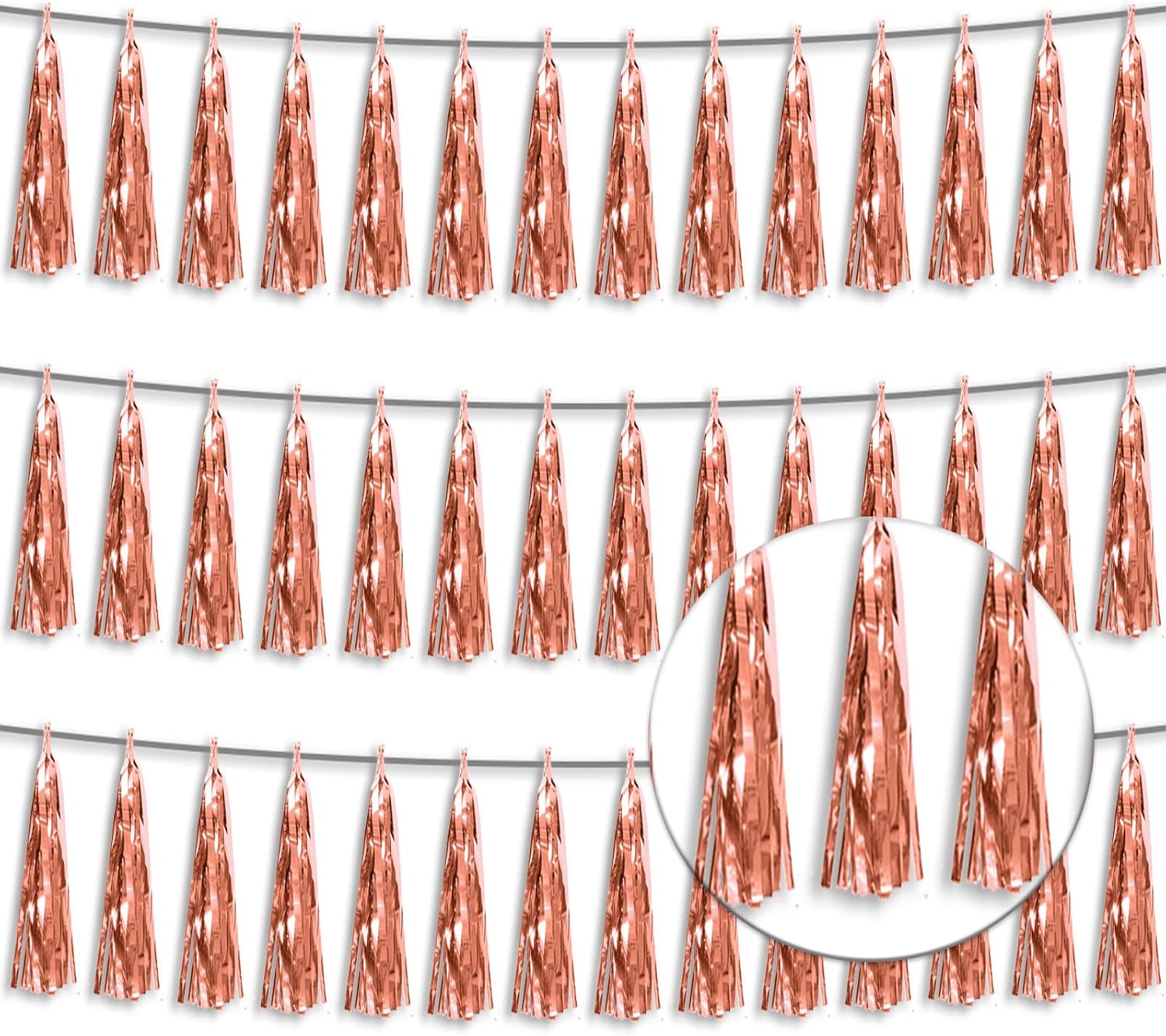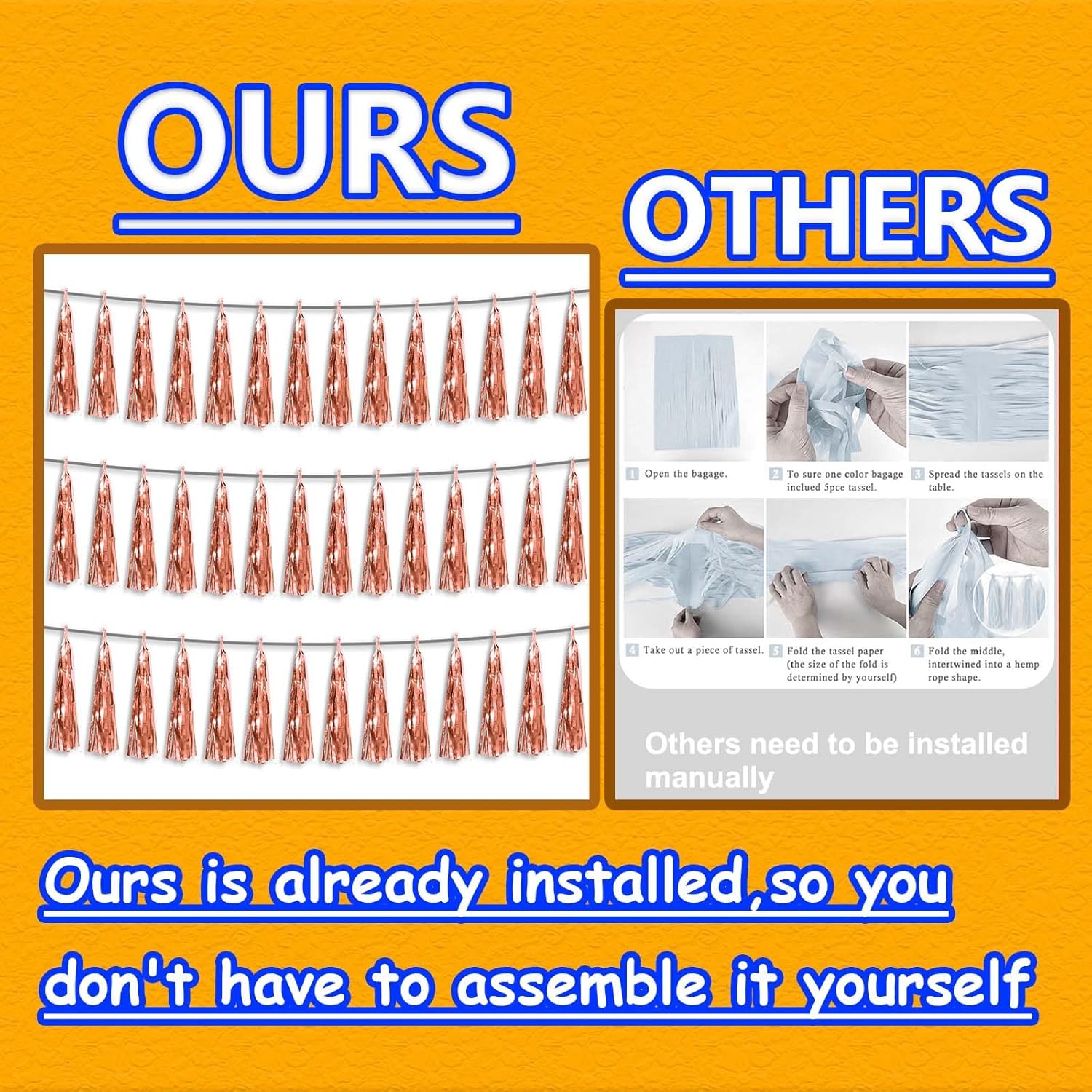 - 【Package Includes】The total length of the rose gold birthday tassels banner is 30 feet, divided into 3 strips, each 10 feet long. Each banner contains 15 tassels, and each tassel measures 14 inches, for birthday decorations many occasions uitable for Patriotic display, Homecoming Float, Christmas Float, ecorative metal trailers, graduation floats etc