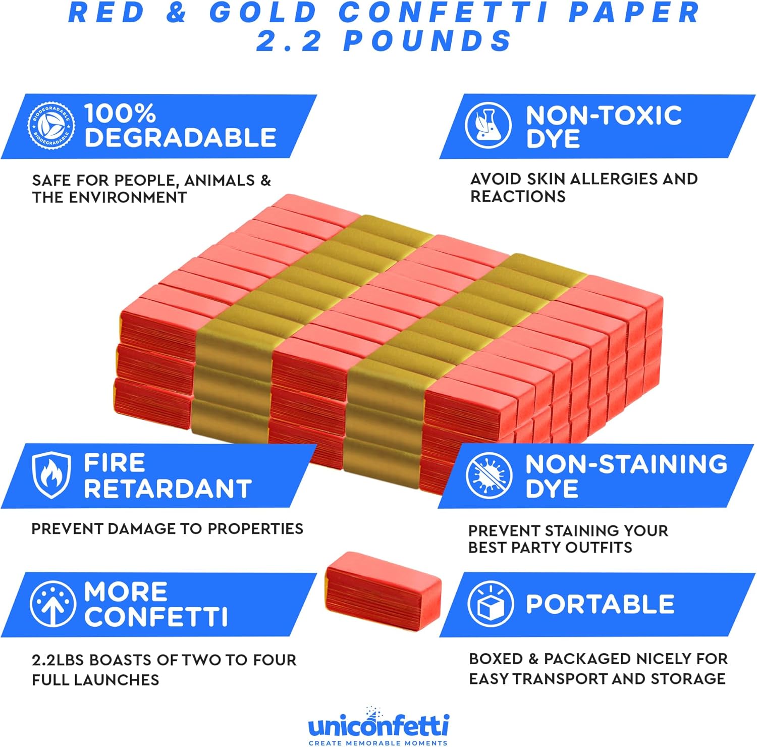 - Size : Red & Gold Confetti Paper 2lbs Biodegradable