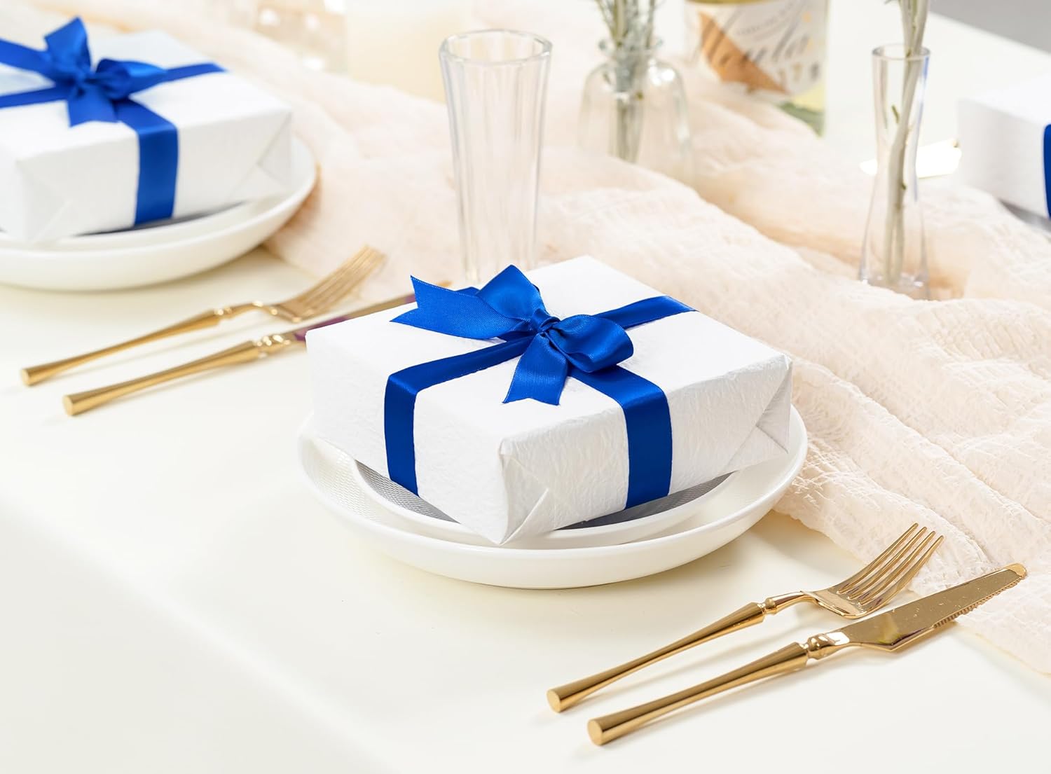 Royal Blue Satin Ribbon 7/8 Inch x 50 Yards Double-Faced Ribbons for Gift Wrapping Flower Bouquet Wedding Paper Bows Invitations Crafts