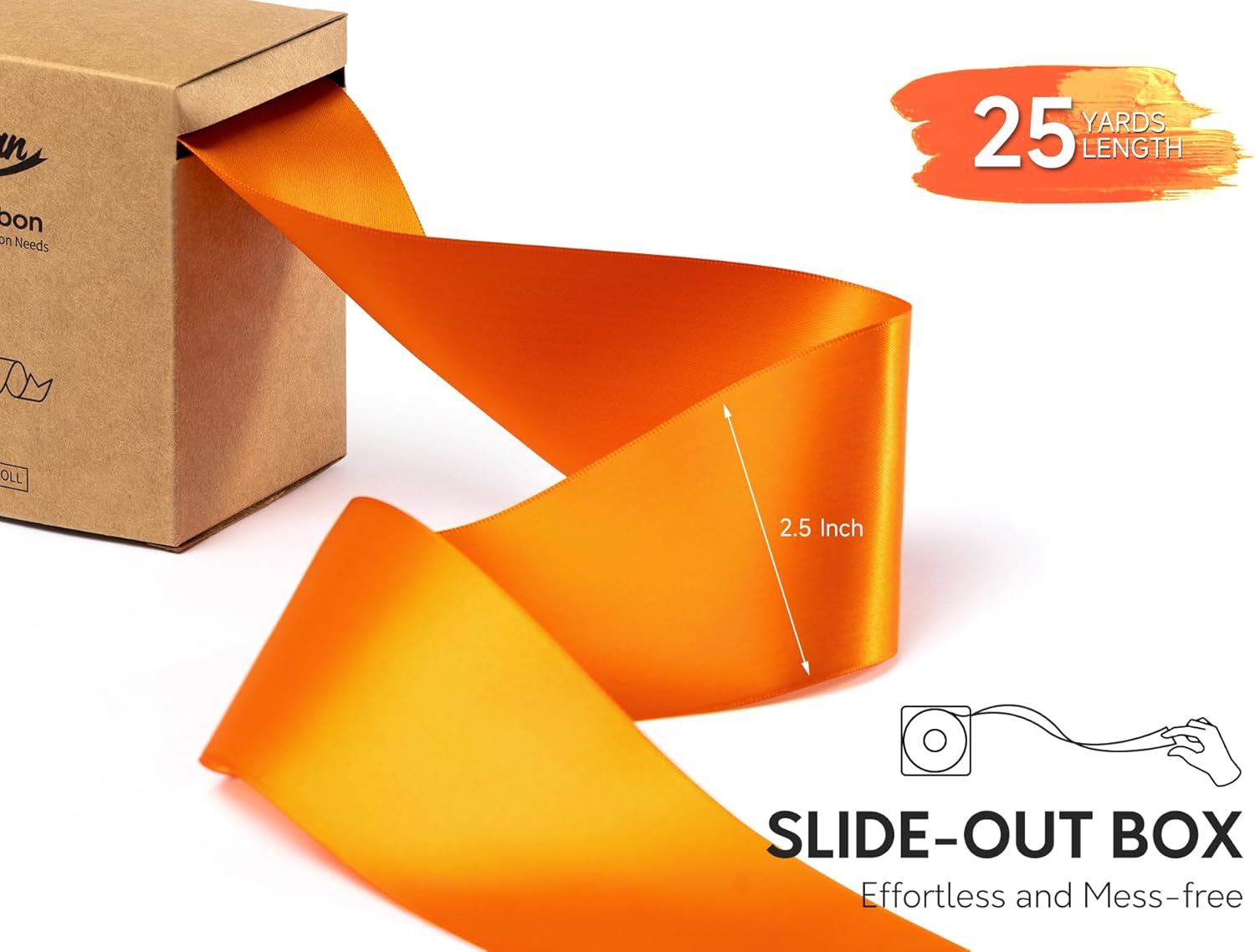Orange Satin Ribbon 2.5 Inch Double-Faced 25 Yards for Bows Crafts Gift Wrapping Christmas Flower Bouquet Fall Wedding