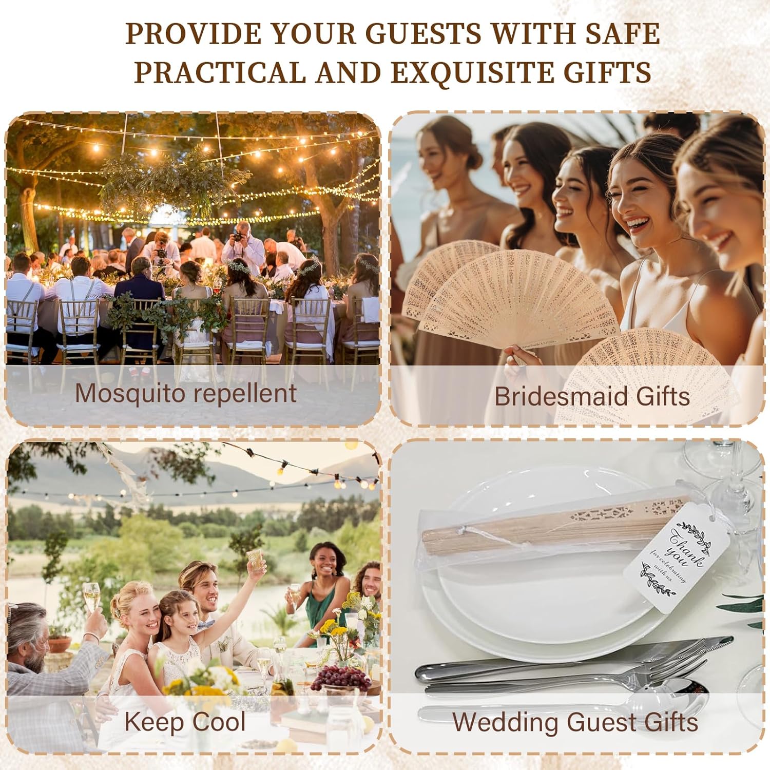- Wedding Fans for Guests: This personalized sandalwood fan has a hollow design and beautiful shape, which not only keeps you cool in the summer, but also shows your elegant temperament. These wedding guest fans are lightweight and easy to carry, which is perfect for long-term use without getting tired. It is perfect for weddings, parties, concert fan teams, indoor and outdoor activities