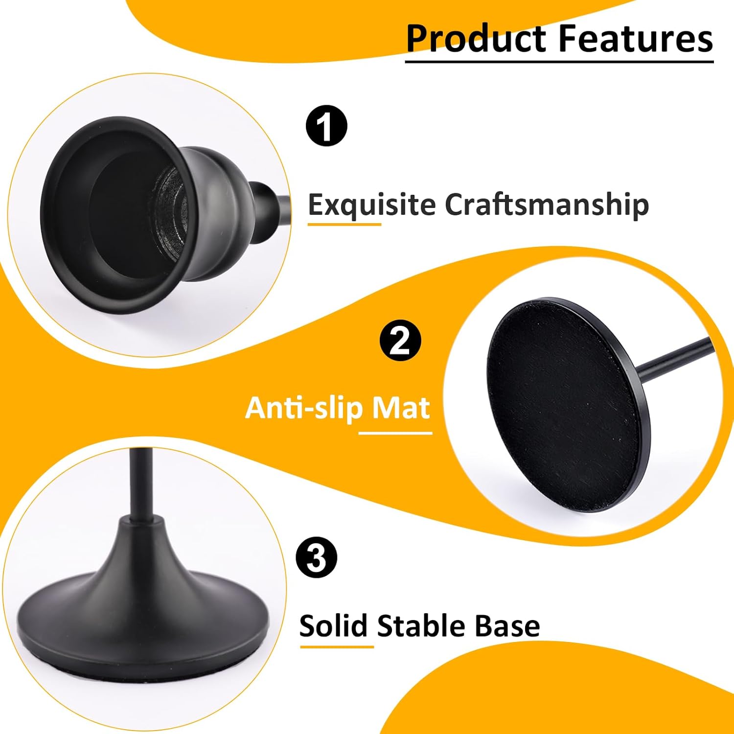 Metal Candle Holders for Candlesticks Taper Candlestick Holders Set Vintage Decorative Centerpiece Candelabra Tall Candle Stands for Halloween Thanksgiving Christmas (Matt Black, 2 Sets (6 pcs))
