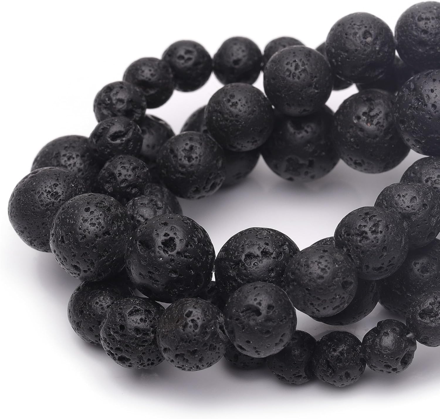 8mm Natural Stone Beads for Jewelry Making,Black Lava Polished Smooth Round Gemstone Beads for Bracelet Necklace 15 Inch