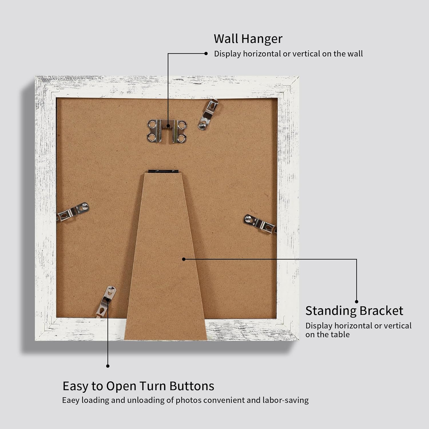 - A Variety of Display Methods: Our picture frames could be hang vertically or horizontally, placed on a desk by their easel-back, or hang on the wall with the mounted hanging hanger.