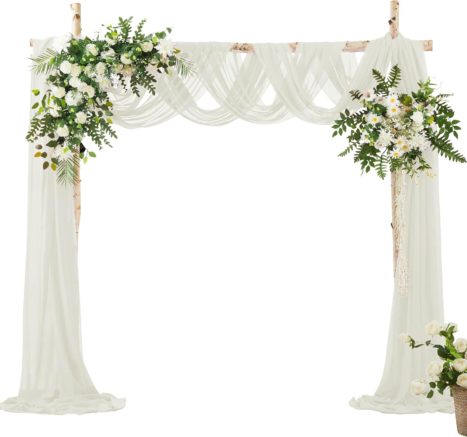 VACVELT Wedding Arch Draping Fabric, Ivory Chiffon, 1 Panel Sheer Drapes, 30 Inch x 20ft Chiffon Backdrop Curtain, Outdoor Sheer Drapery for Ceremony Party Ceiling