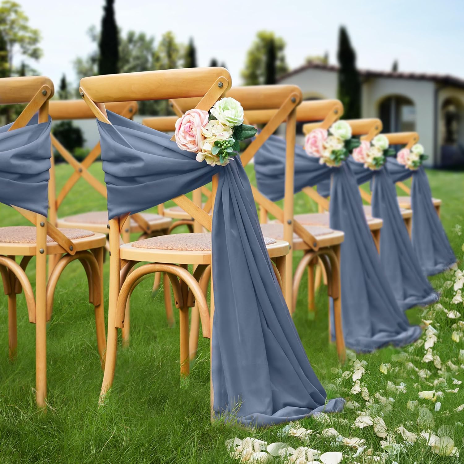 VACVELT Wedding Arch Draping Fabric Dusty Blue Chiffon, 1 Panel Sheer Drapes 30 Inch x 20ft Chiffon Backdrop Curtain Decor, Outdoor Sheer Drapery for Ceremony Party Ceiling