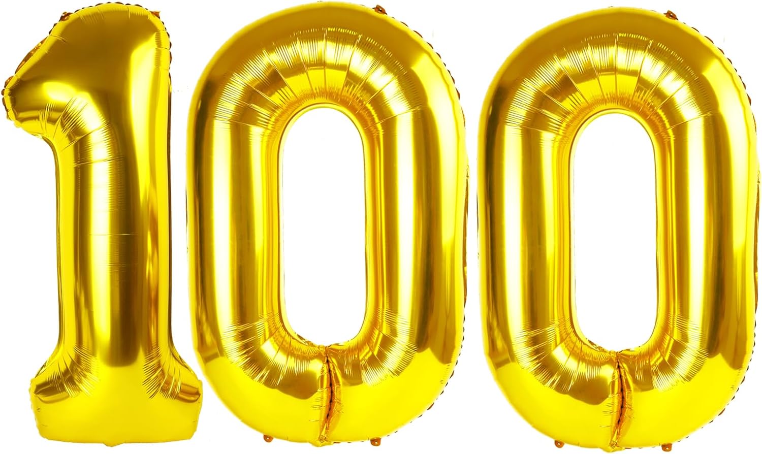 - 1.Warm Noble Gold Number Balloons:You will receive an uninflated 40 inch gold big number 100 balloon. Gold balloons symbolize warmth and wealth. And add charm to 100 birthday balloon number decorations. Dazzling gold huge size make them the highlight of birthday parties and anniversaries. Choose one or more mylar birthday balloons you want from 0-9 giant numbers. I believe mylar balloons will impress your family friends. Use gold birthday balloons to create a lively charming party!