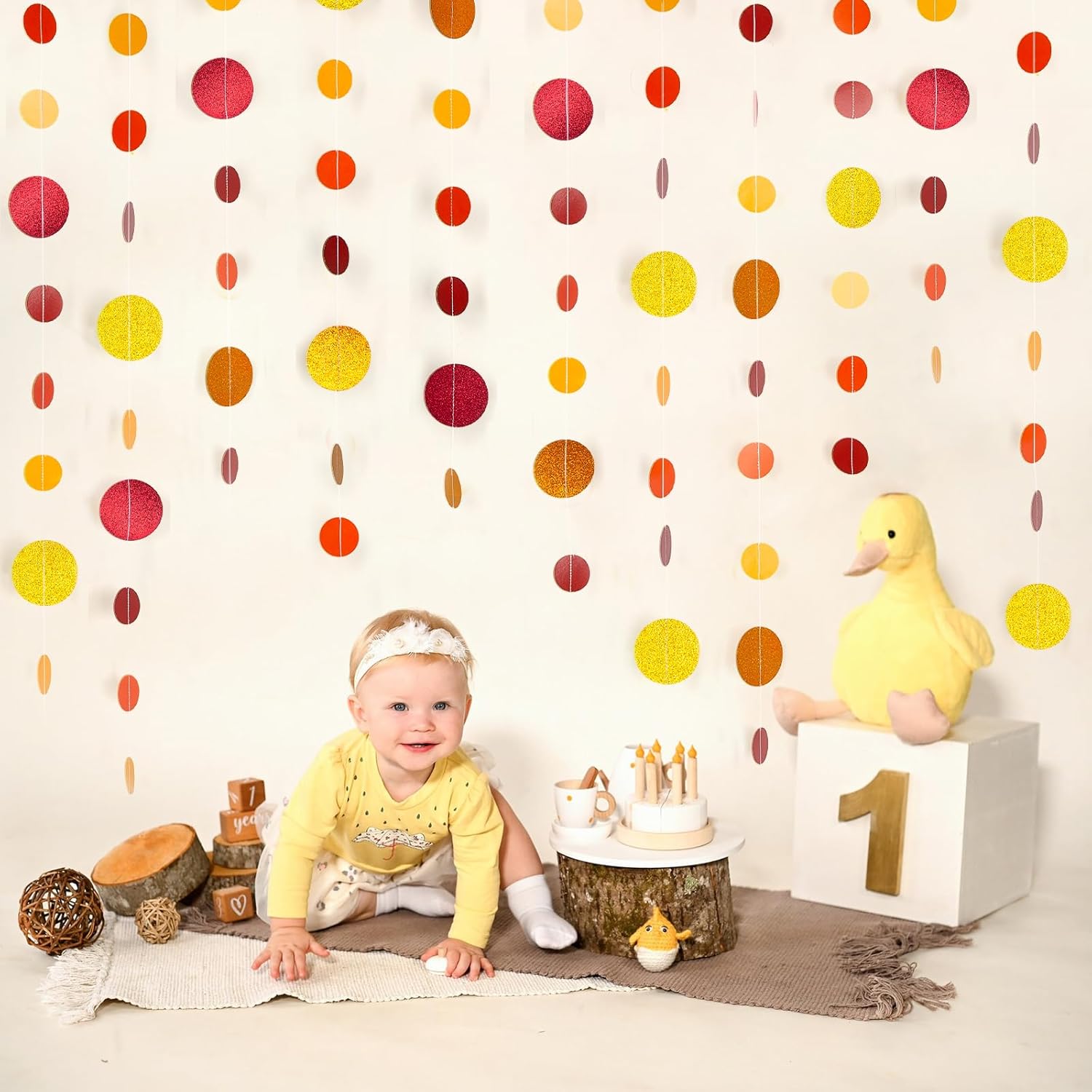 - 【Warm & Festive Fall Decor】 Capture the cozy essence of autumn and festive holidays with our Orange-Red Glitter Dot Garland. Ideal for Halloween parties, Thanksgiving gatherings, autumn weddings, baby Showers and seasonal decorations, this garland enhances your space with rich, warm tones.