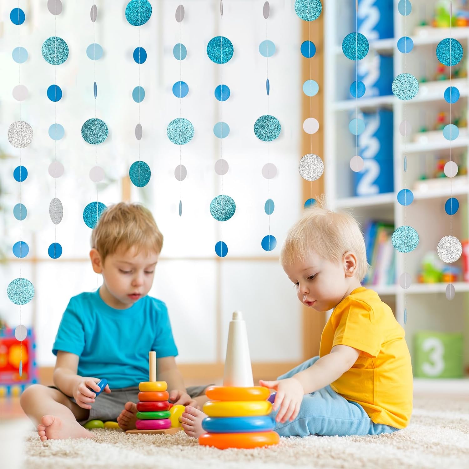 - 【Elegant & Versatile Blue Decor】 Bring a soft and sophisticated touch to your special occasions with our Blue Glitter Dot Garland. Perfect for baby showers, weddings, winter celebrations, birthdays, and holiday parties, this garland adds a stylish and festive flair.