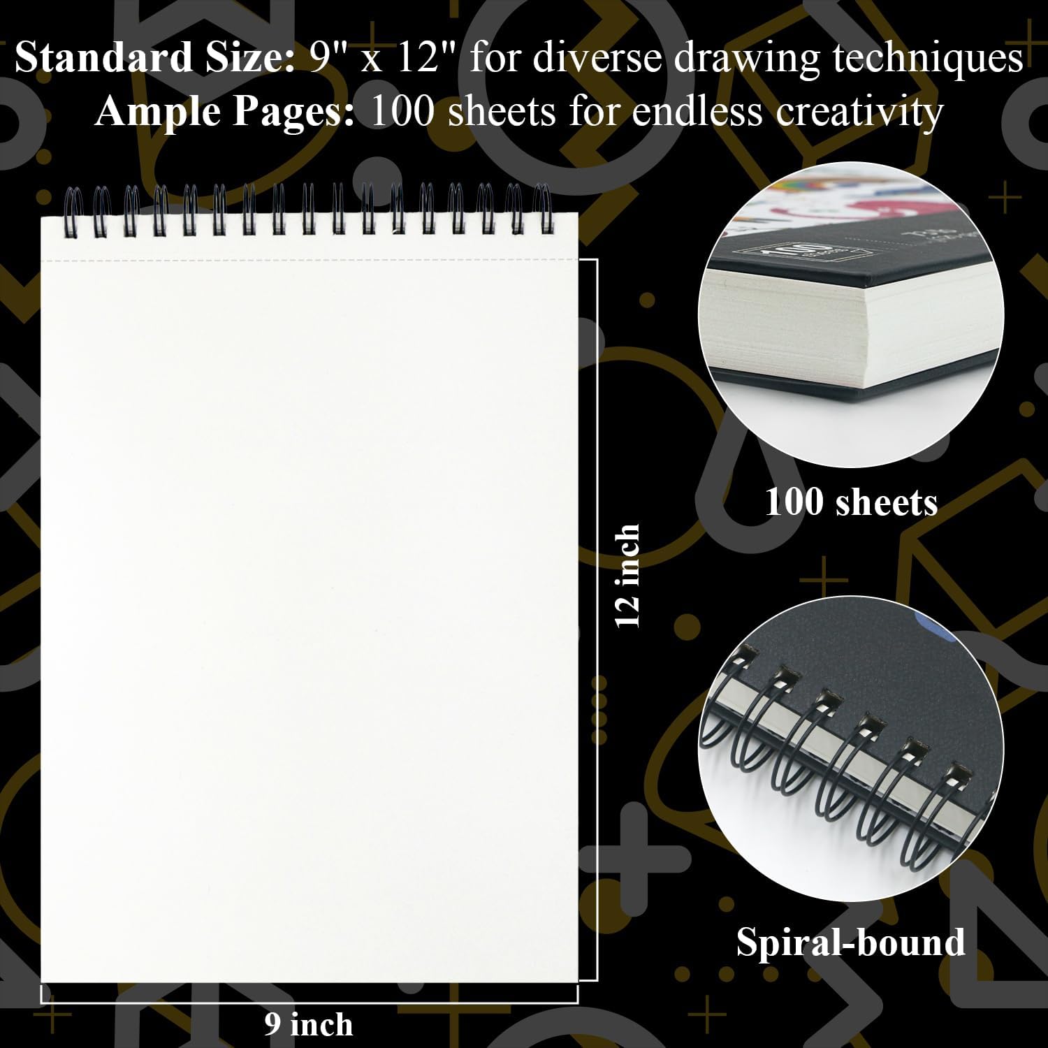 Sketch Book for Kids, 9" x 12" Kid Sketchbook, 100 Sheets (73lb/120gsm) Drawing Paper for Kids, Spiral Sketch Pad for Kid, Art Supplies for Classroom Must Haves.