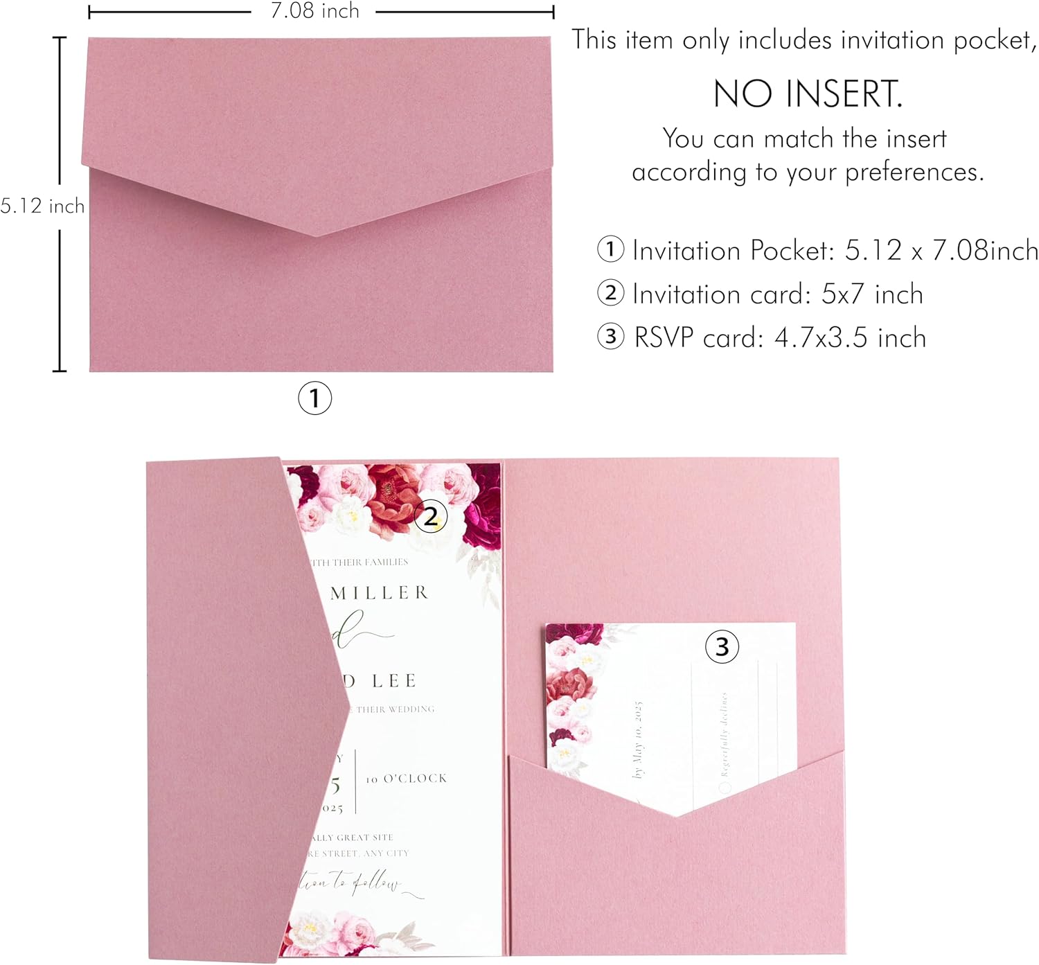 - PACKAGE -- This item only include 20 pcs invitation pocket, You can match the insert and RSVP card to your liking