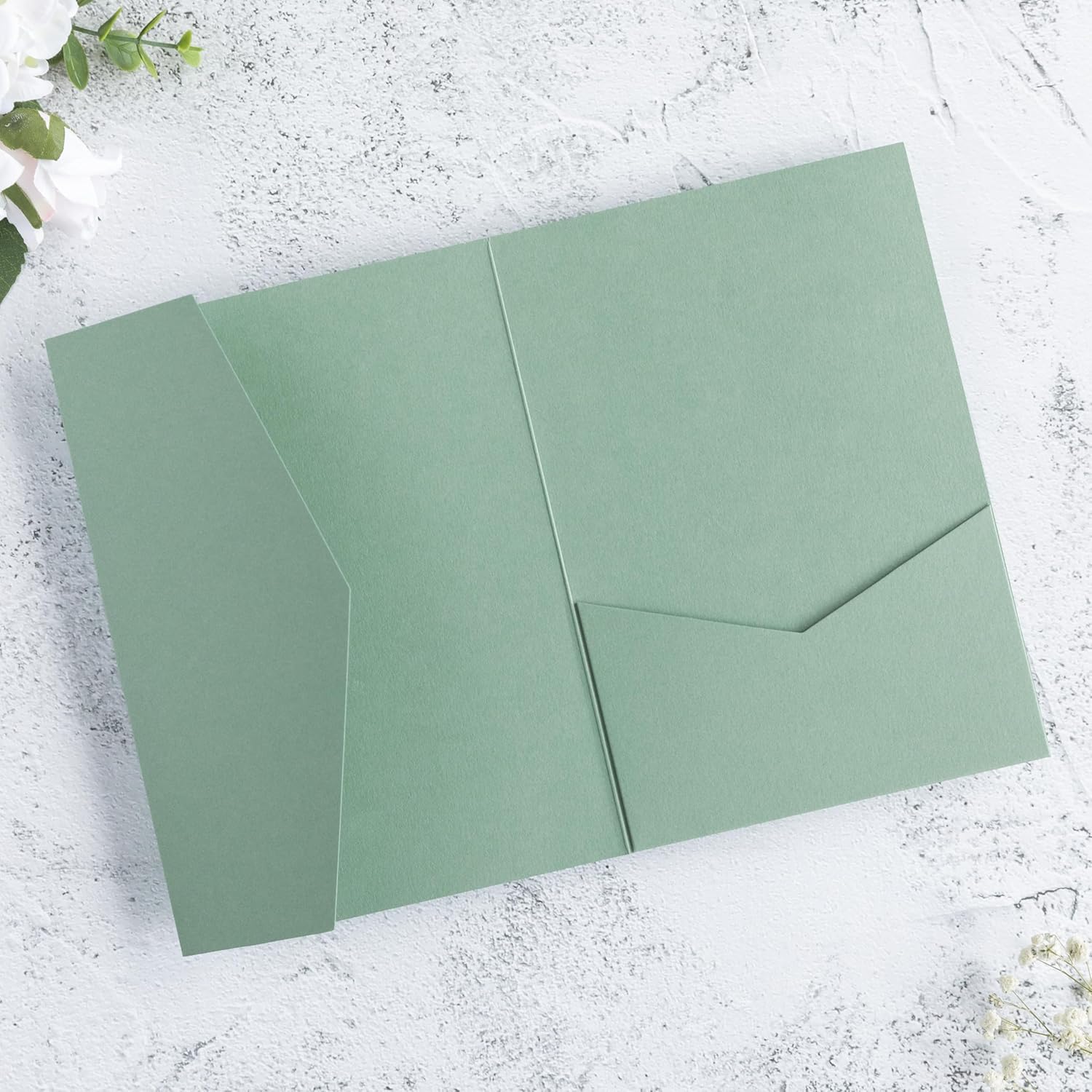 20 PCS Sage Green Tri-fold Laser Cut Wedding Invitation Pockets for 5x7 Wedding Cards Bridal Shower Engagement Quinceanera Invitation