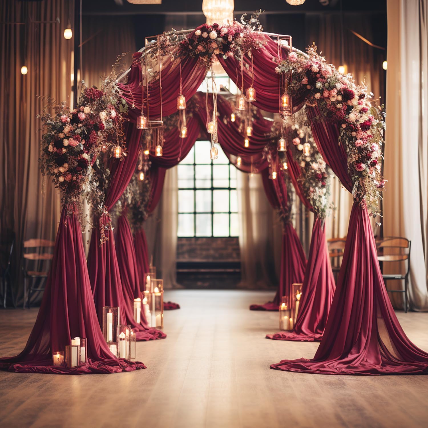 Wokceer Wedding Arch Draping Fabric 6 Panels 28.7" x 20FT Burgundy Drapes Sheer Fabric Backdrop Arch Draping Fabric for Wedding Ceremony Birthday Party Bridal Shower Decoration