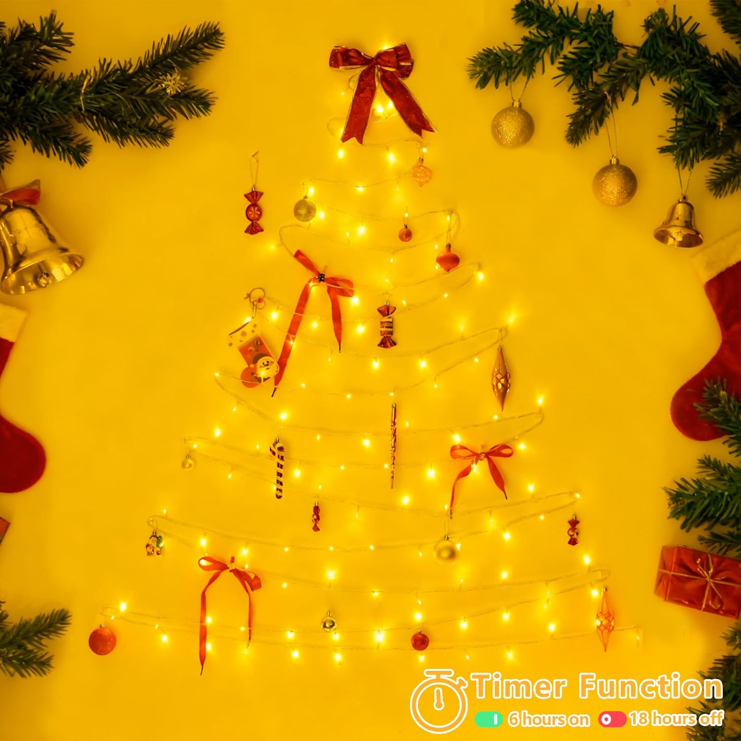 - Timer Function: You can also set a timer to avoid forgetting to turn off the string lights. When turn it on, string lights will be ON for 6 hours and OFF for 18 hours. How to set: Long press the button 3s until it turns green. How to cancel timer function: Long press the button 3s until it turns white.
