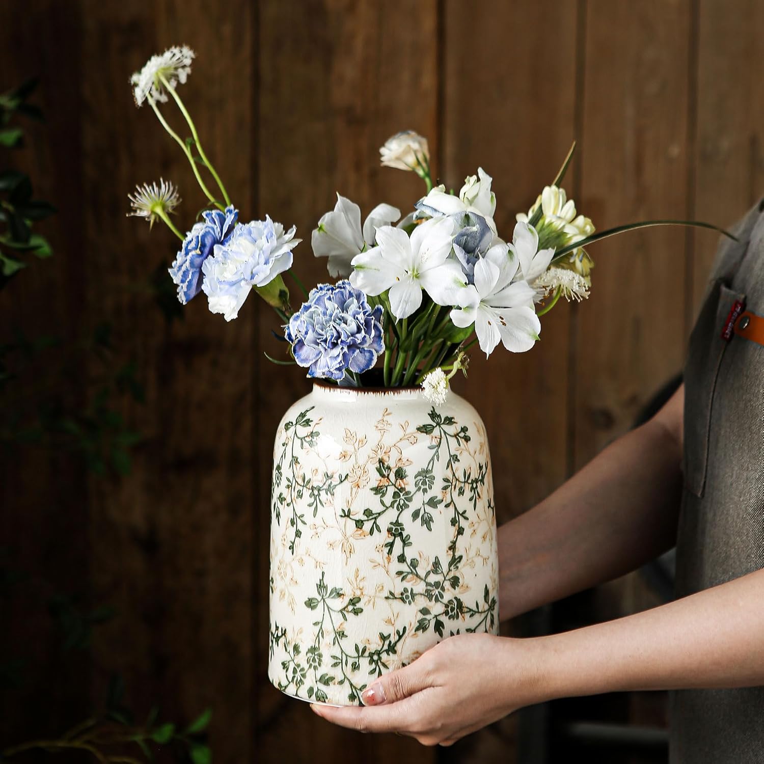 - HIGH QUALITY CRAFTSMANSHIP: Expertly crafted from fine ceramic, this floral vase is built for durability and long-lasting beauty. Its heirloom quality look and feel make it a distinguished addition to your ceramic vases for home decor collection.