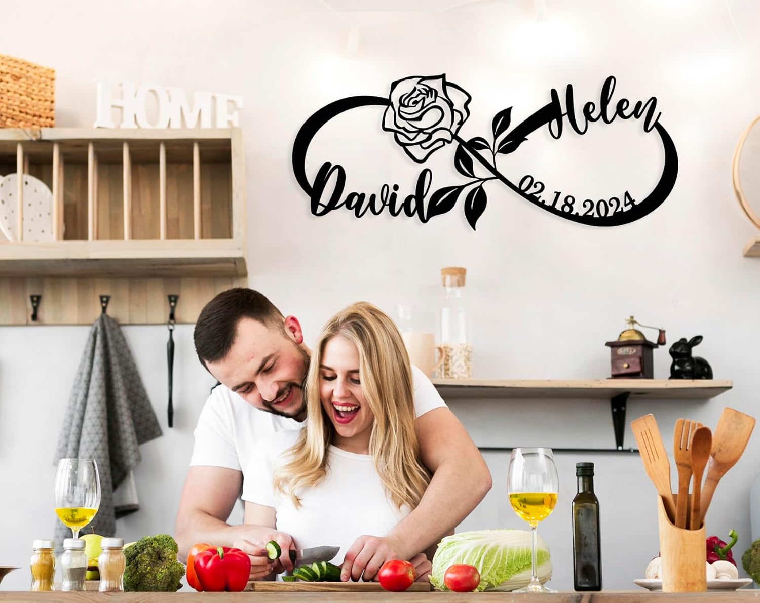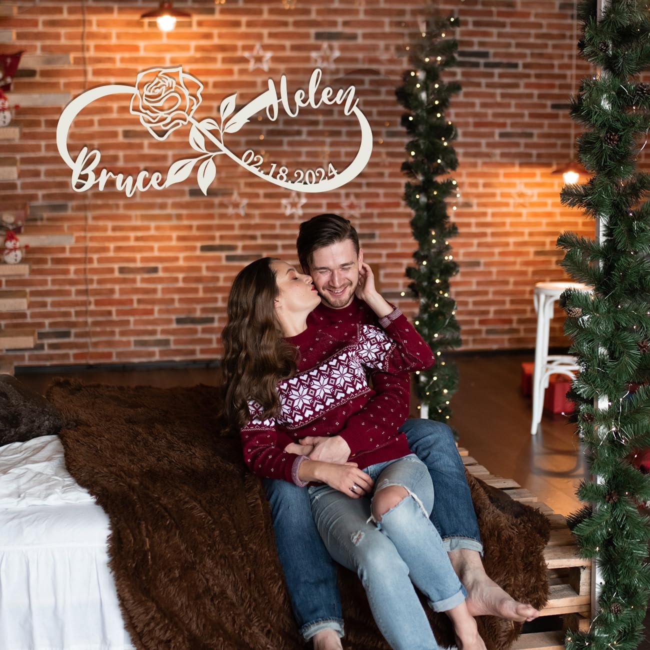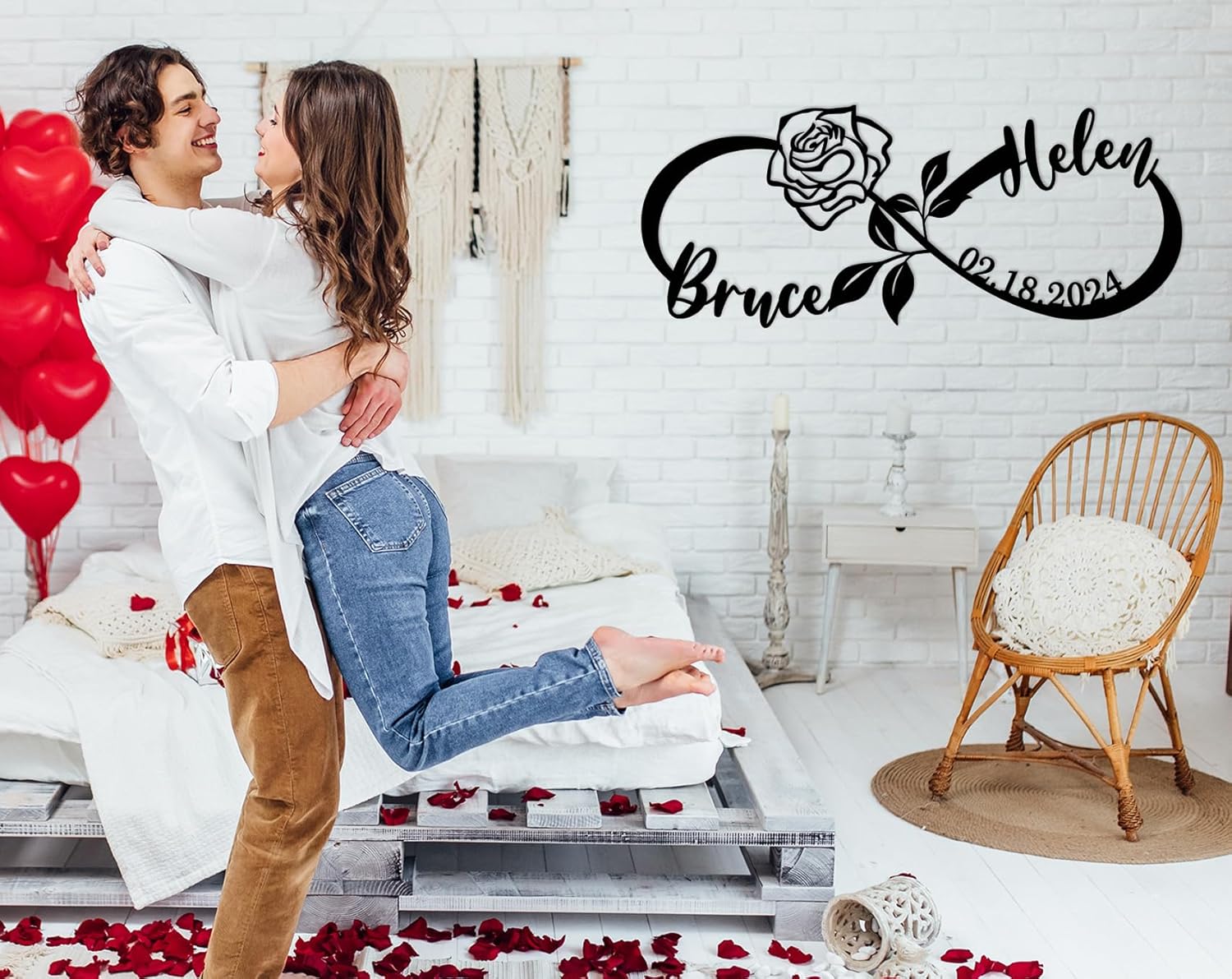 Custom Infinity Sign, Personalized Couples Name Sign, Infinity Metal Name Sign, Personalized Wedding Gifts, Love Name Sign, Infinity Wall Decor with Flower, Anniversary Housewarming Gift