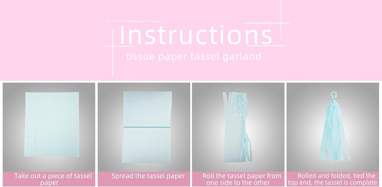 - 【Package Including】The decorations kit include 15pcs tissue paper tassel garland in 3 colors,blue white and pink,each tassel is approx 13.8inches in length