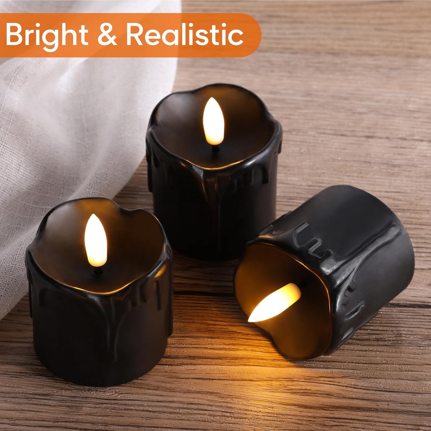 - Realistic Flameless Candles: simulated black wick flame, coated with real wax, dripping wax design, these black candles are lifelike as burning real candles