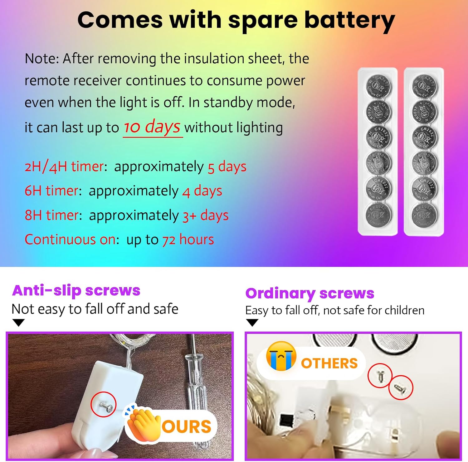 - Note: After removing the insulation sheet, the remote receiver will continue to consume battery power even when off, allowing up to 72 hours of continuous use. It is recommended to replace the included battery after this time for optimal performance.