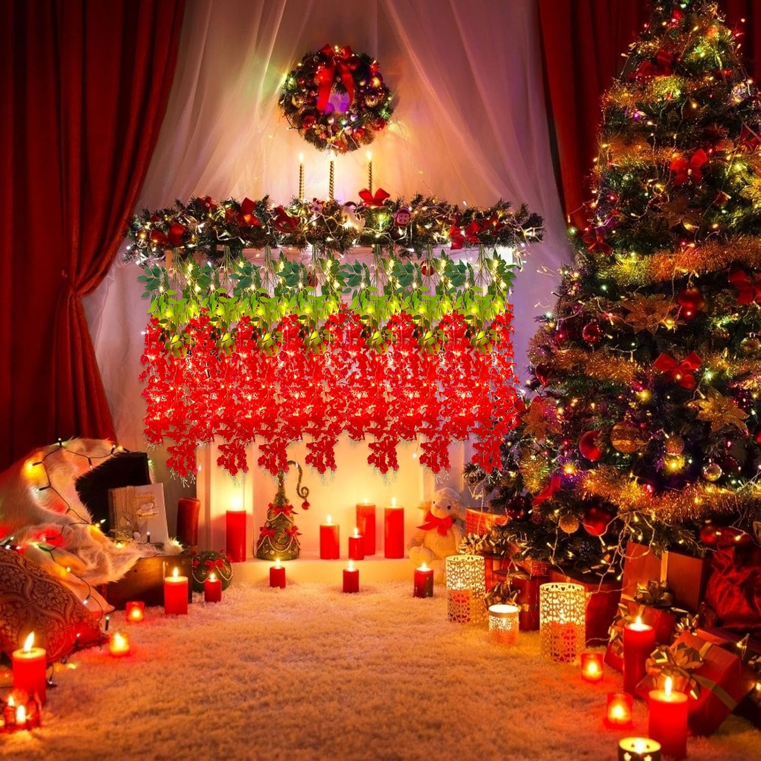 - 【Easy to Install】The red hanging garland flowers stem are made of durable metal wire and covered with plastic. You can bend the wisteria flower in any shape to satisfy your decoration imagination without damaging it. And the wisteria flower is very easy to install and remove, you can reduce a lot of troubles on installation.